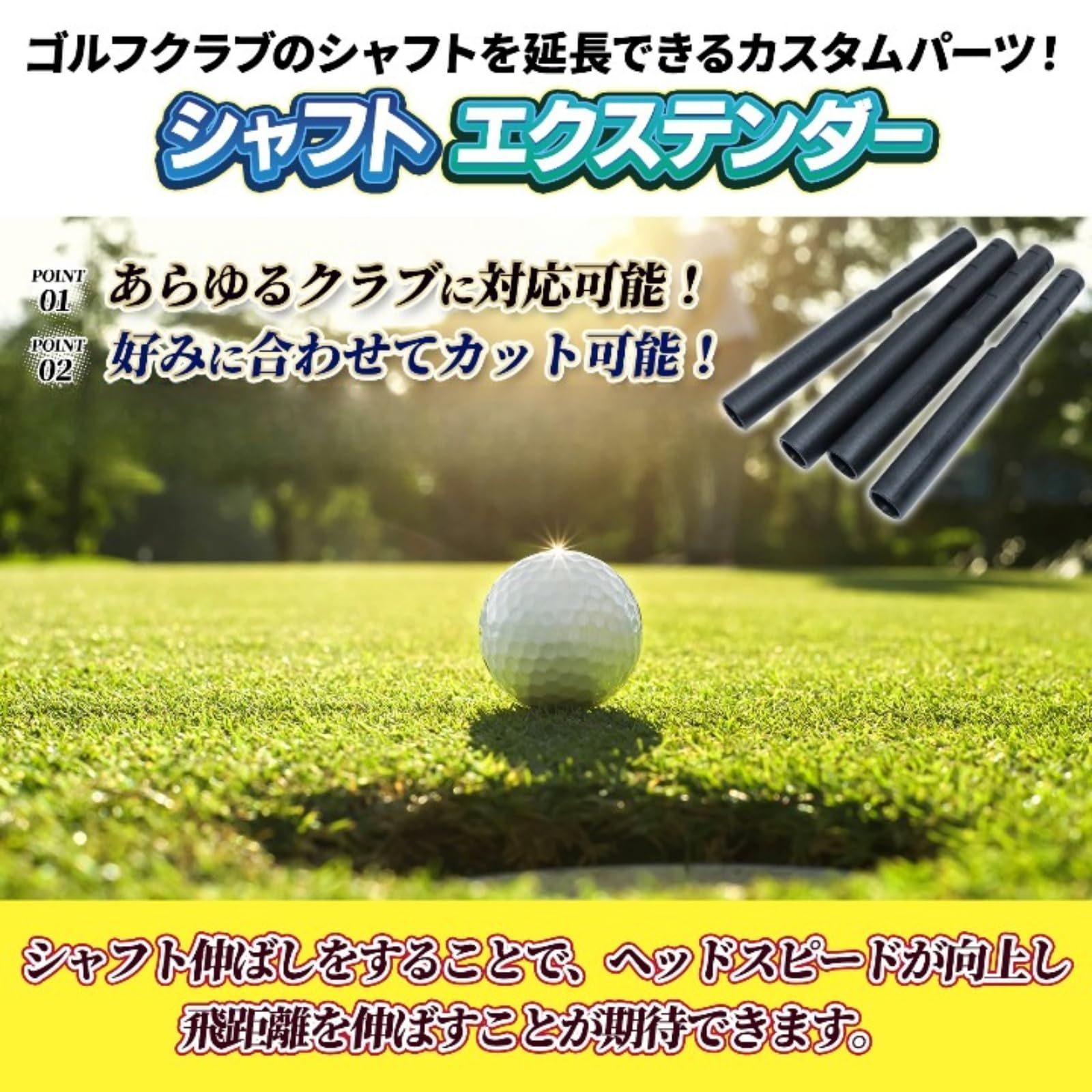 ゴルフクラブのシャフトを延長できる便利なカスタムパーツ、シャフト・エクステンダーです。シャフト伸ばしをすることで、ヘッドスピードが向上し、飛距離を伸ばすことが期待できます。