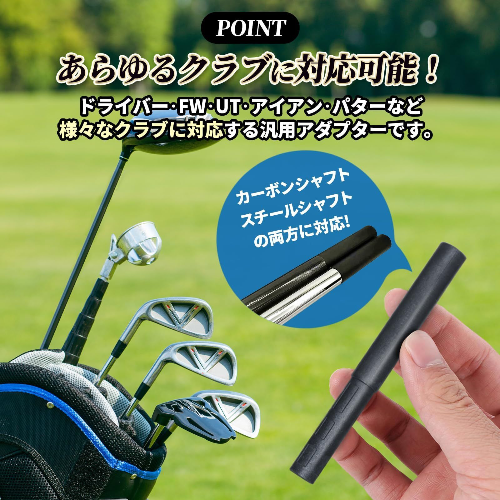 ドライバー、FW、UT、アイアン、パターなど、あらゆるクラブに対応可能な汎用アダプターです。また、カーボンシャフトとスチールシャフトの両方に対応しています。