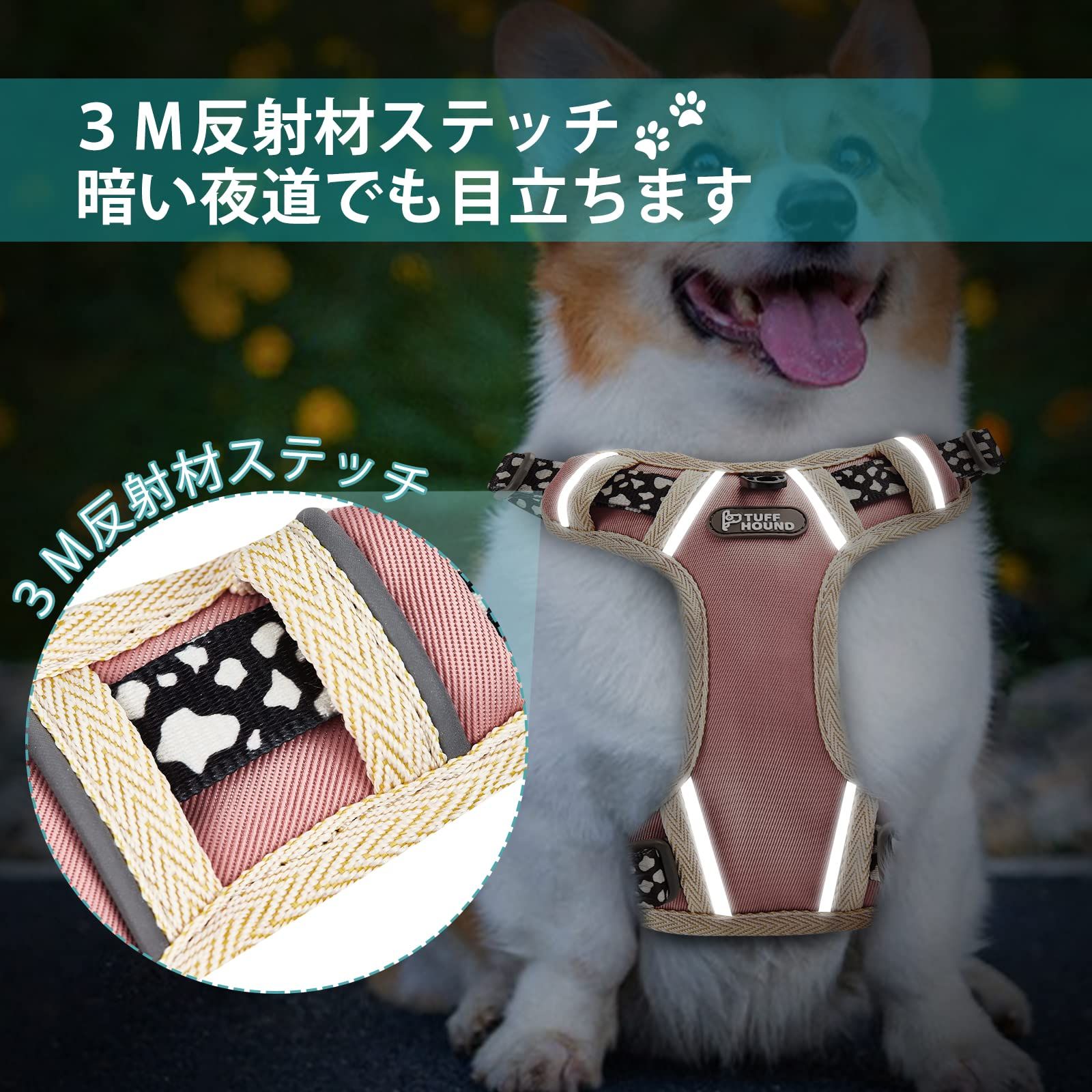 【日本正規代理店品】TUFF HOUND 犬 ハーネス メッシュ素材 通気性一番 夜間反射 引っ張り防止 歩行補助 人気 可愛い 軽量 小型犬 中型犬 大型犬 柴犬 胴輪 調節可能 散歩用(XL ピンク)