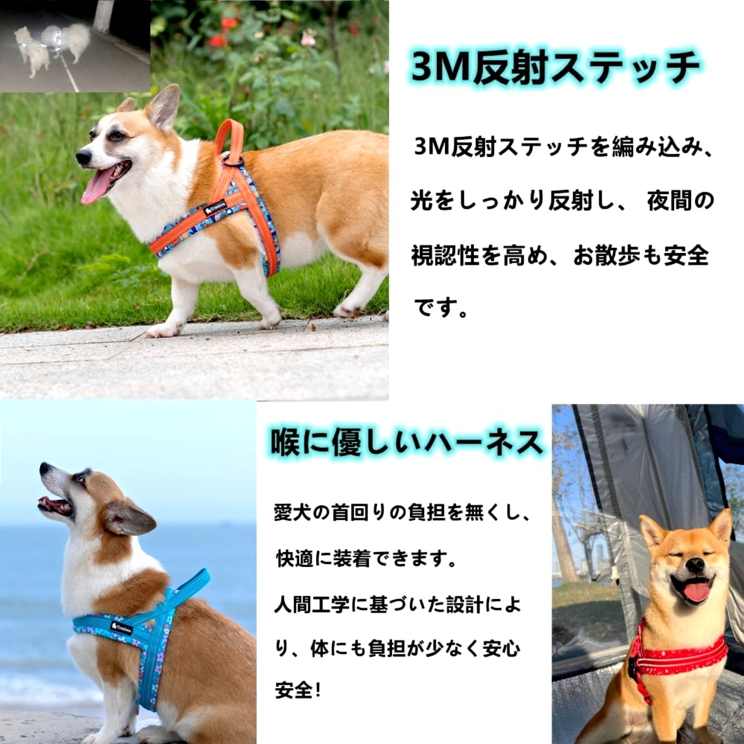 cocomall 2025最新喉に優しい犬ハーネス TRUE LOVE日本授権店 犬用ハーネス 犬用胴輪 ドッグ ペット用品 3M反射材料 訓練 ネオプレン素材 小型犬、中型犬、大型犬に向け 通気性 調節可能 夏に対応 (ファイアクラッカー S)
