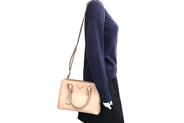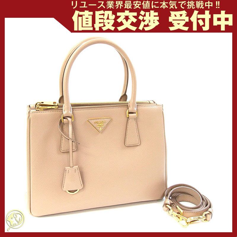 プラダ2WAYハンドバッグガレリア1BA863ベージュレザー中古ショルダーバッグクロスボディロゴ斜め掛けレディースPRADA