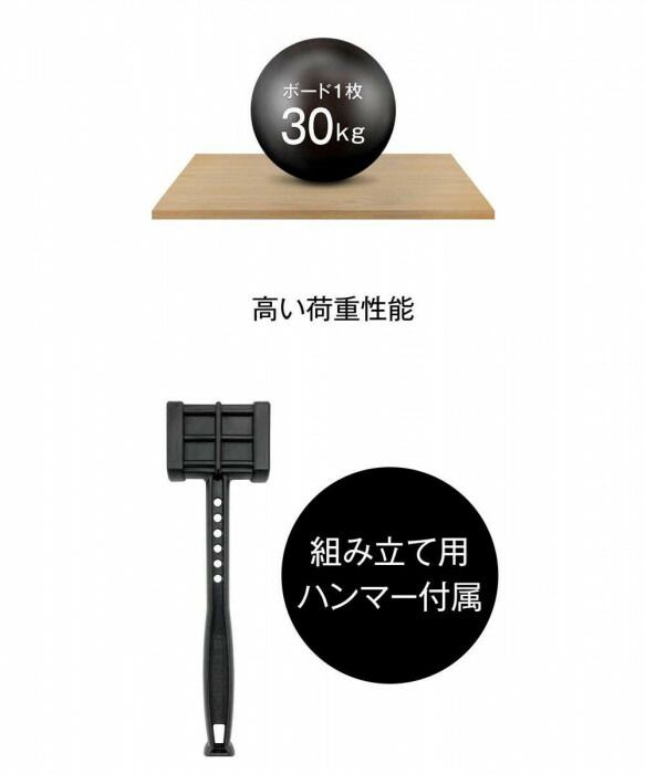 高い耐荷重で大容量に収納できるシェルフタイプ。脚用キャップが2セットついているため、2つに分割しても使用いただけます。