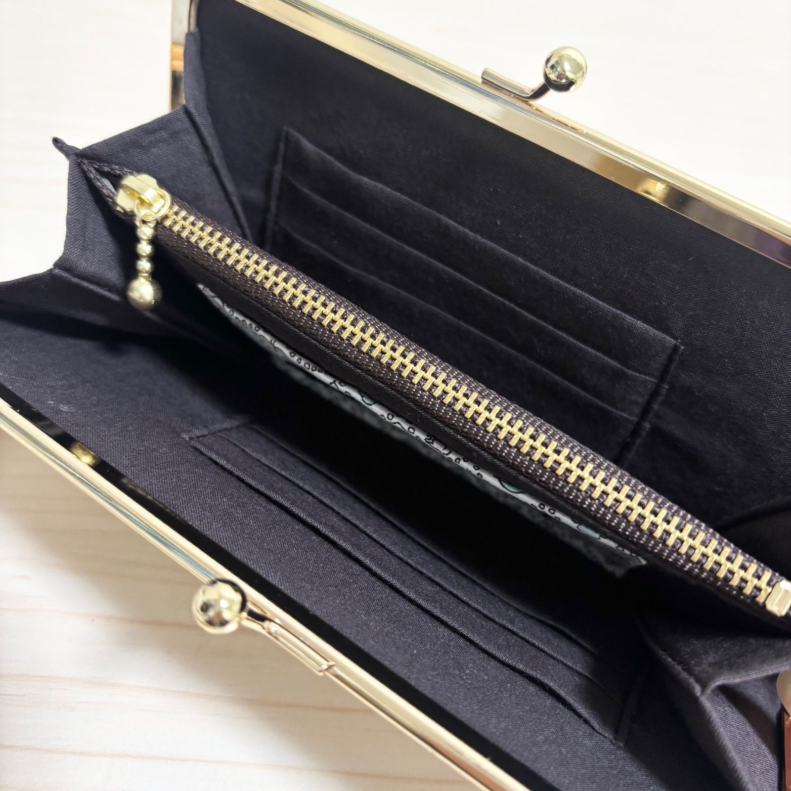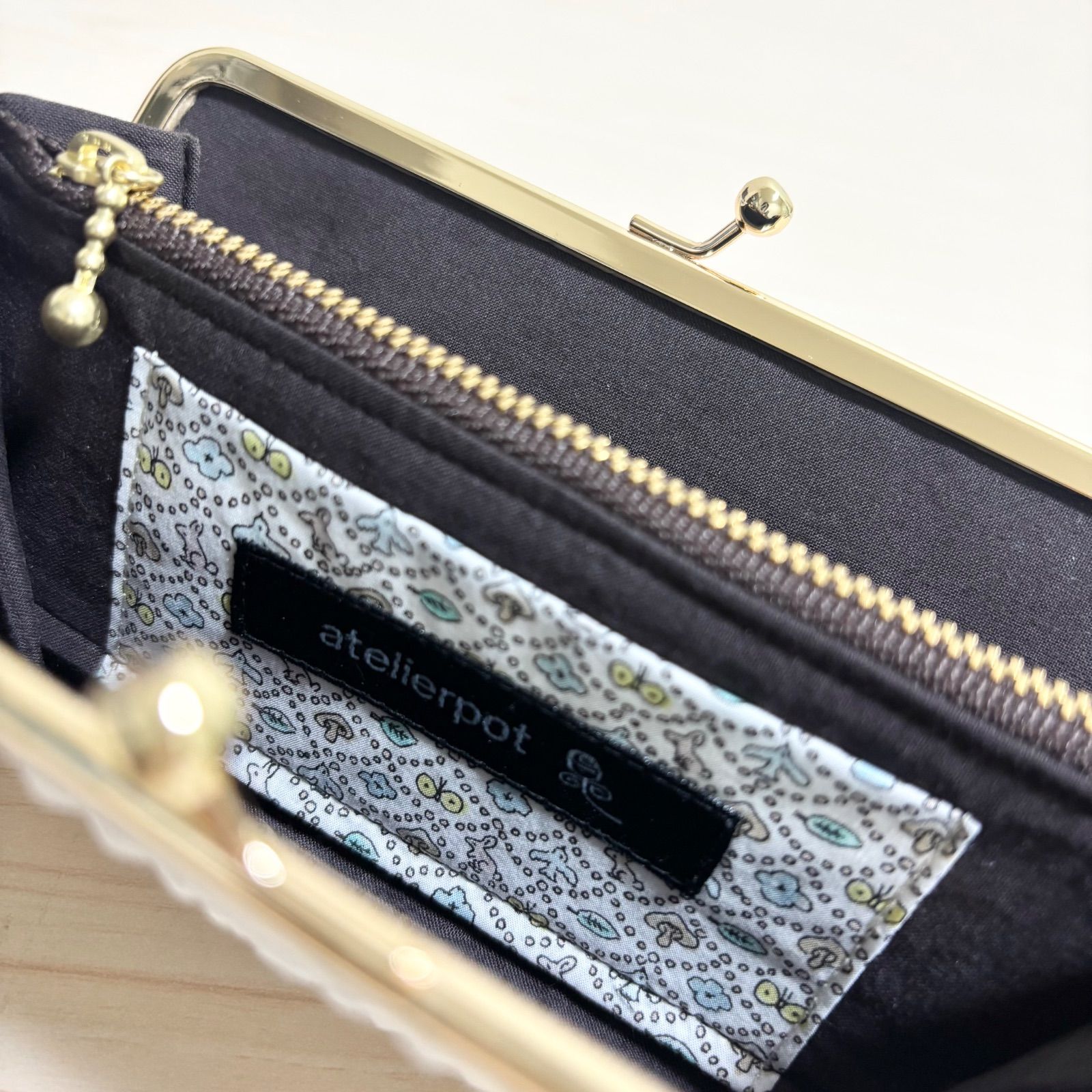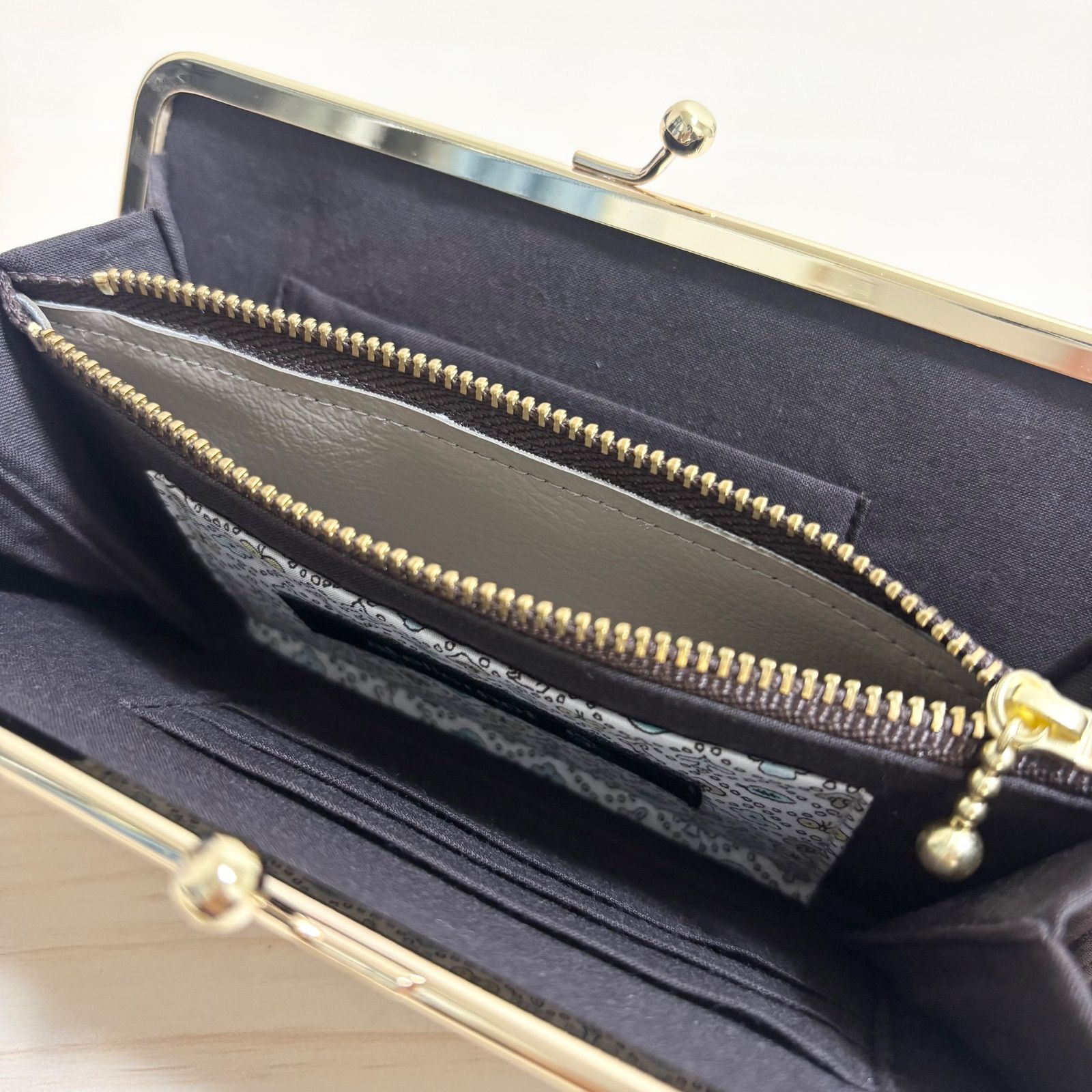 gold口金(角田商店)、玉付goldファスナー(YKK)、3種類の接着芯使用。