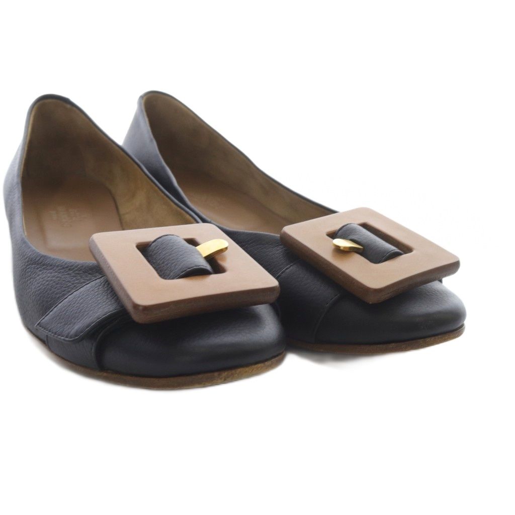 【商品名】エルメス HERMES パンプス フラット レザー 36.5 ブラック /YO15