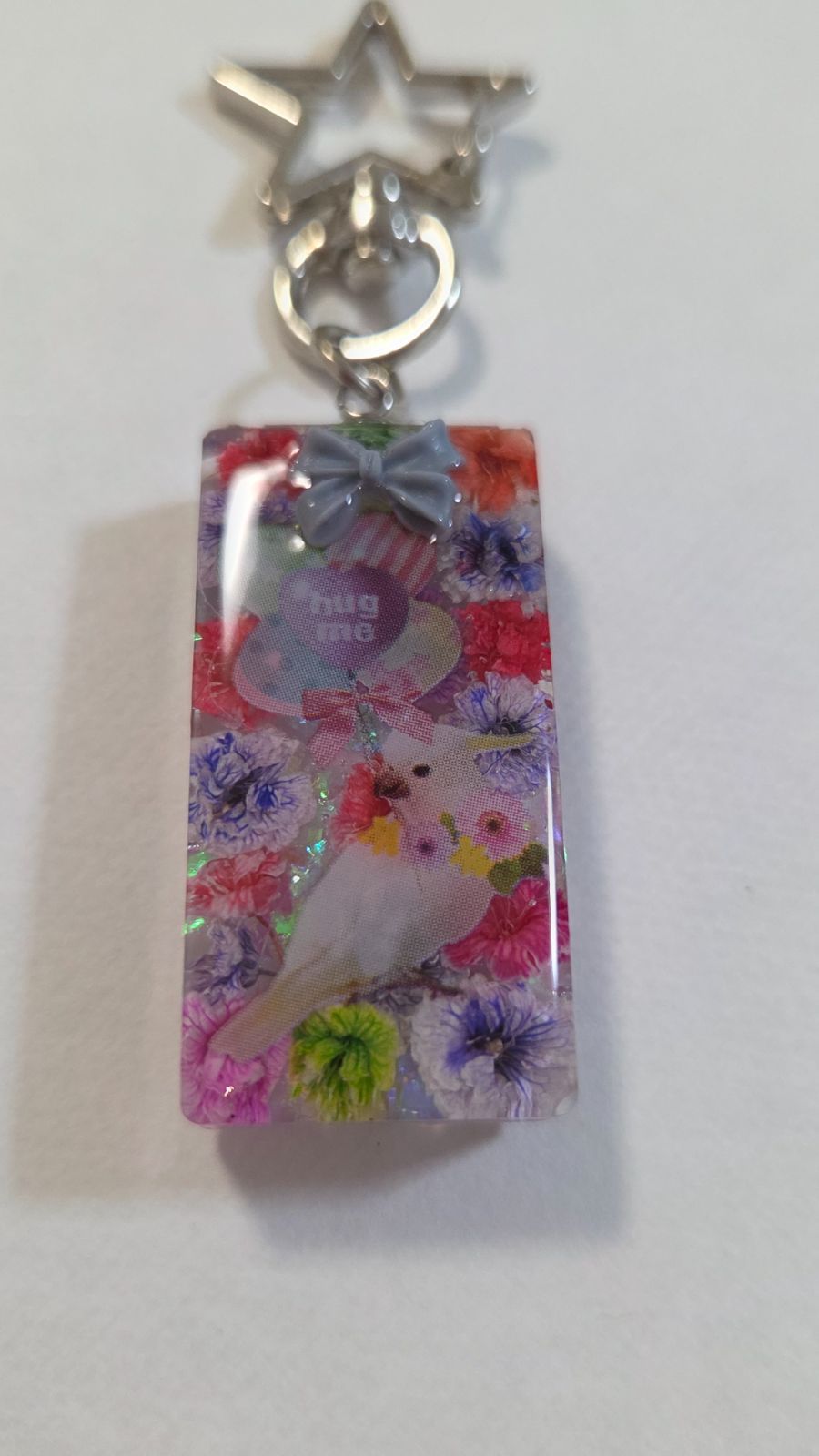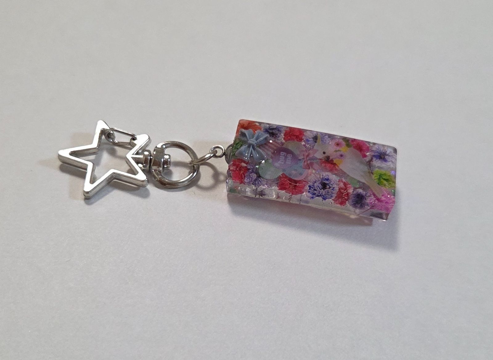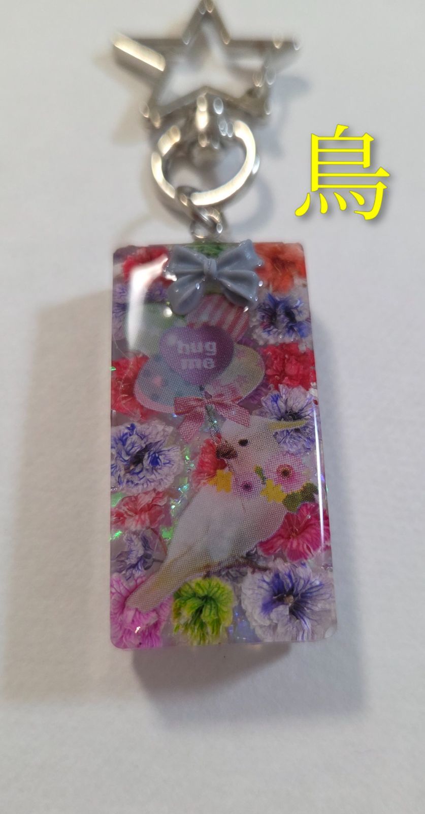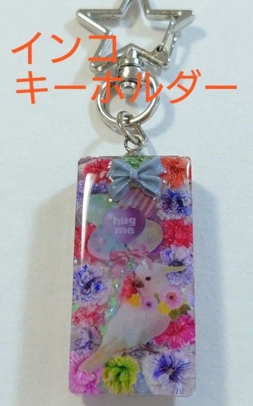 インコちゃんかわいいレジンキーホルダー☆ドライフラワー入り