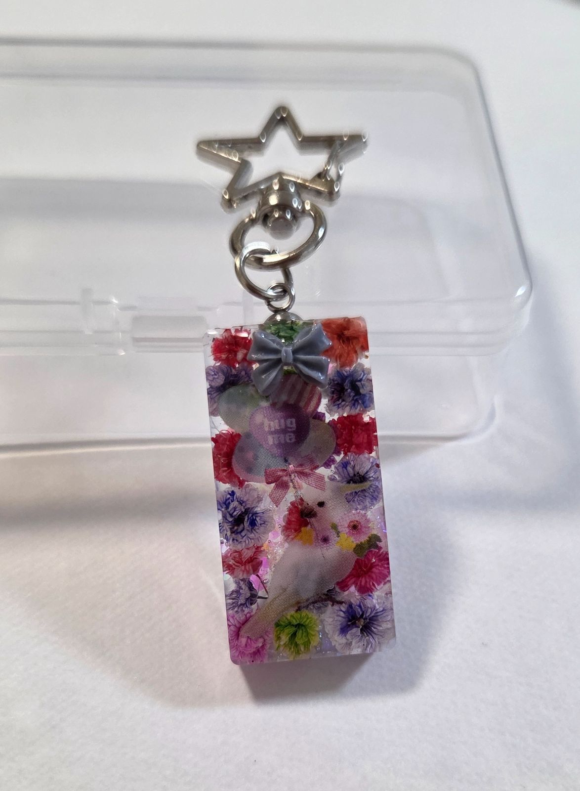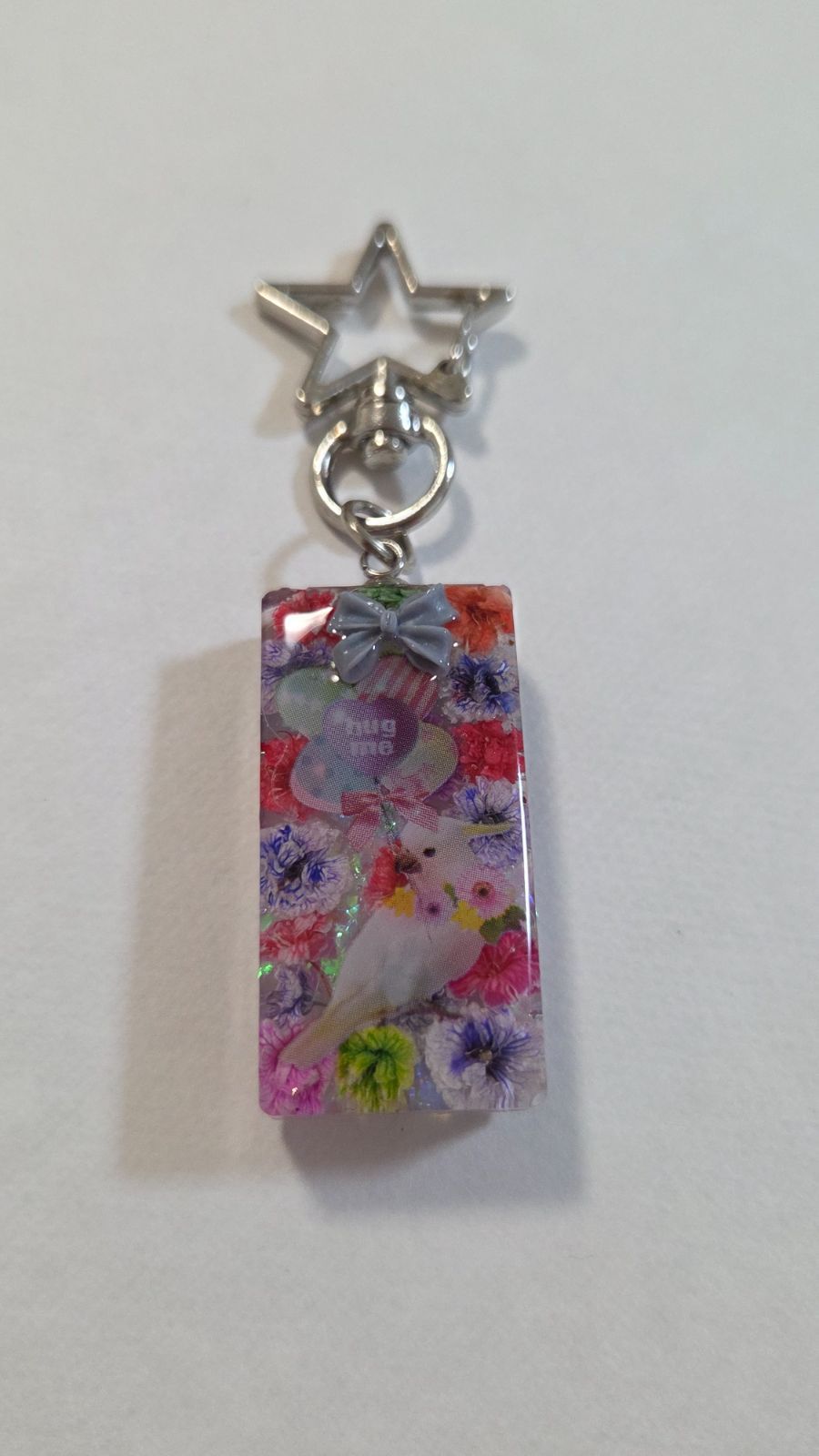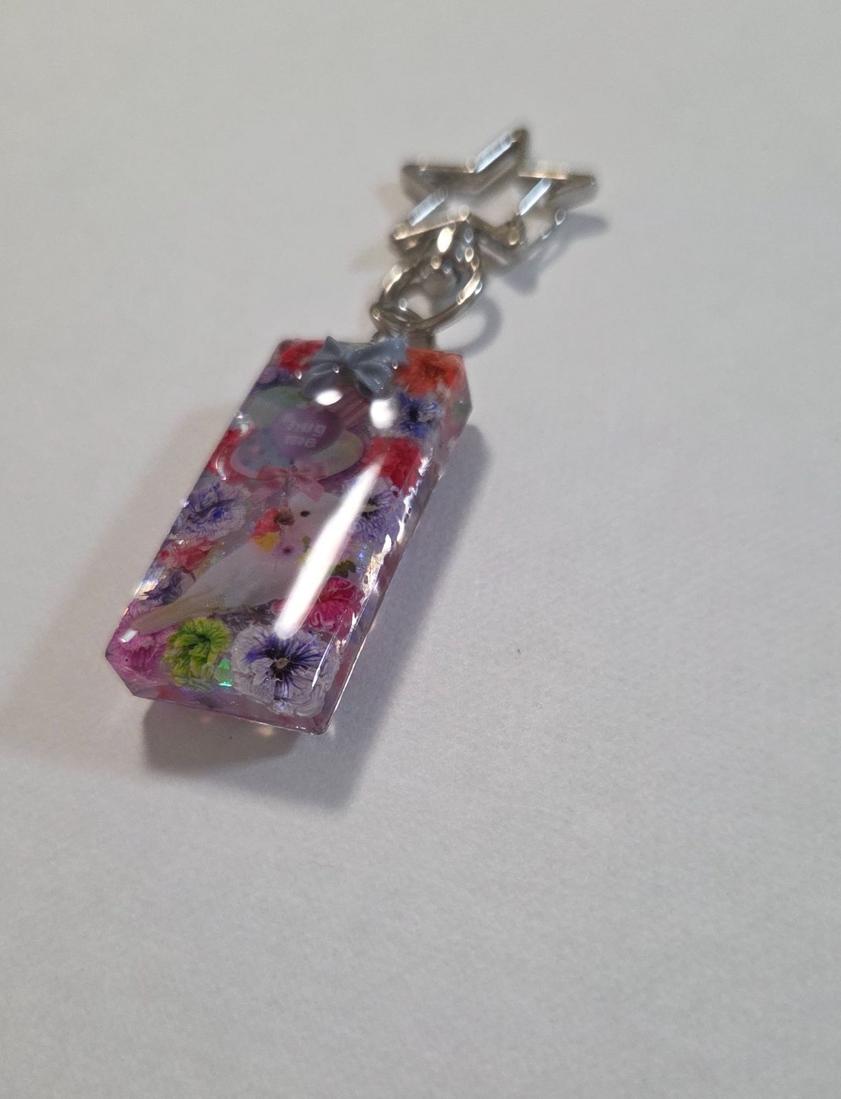 インコちゃんかわいいレジンキーホルダー☆ドライフラワー入り