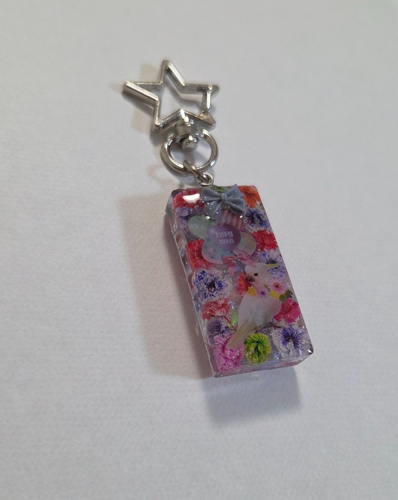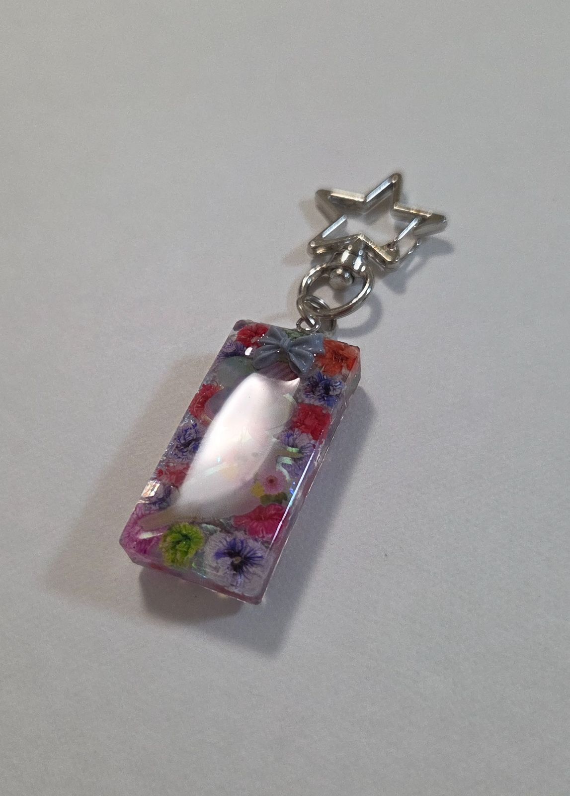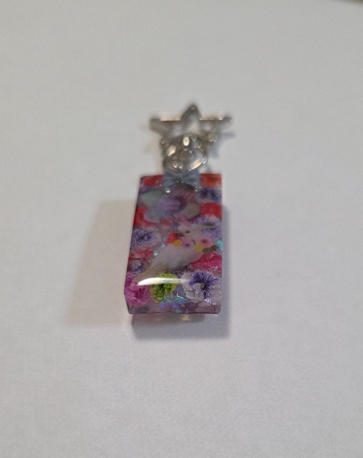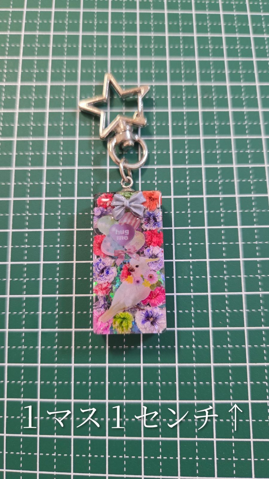 インコちゃんかわいいレジンキーホルダー☆ドライフラワー入り