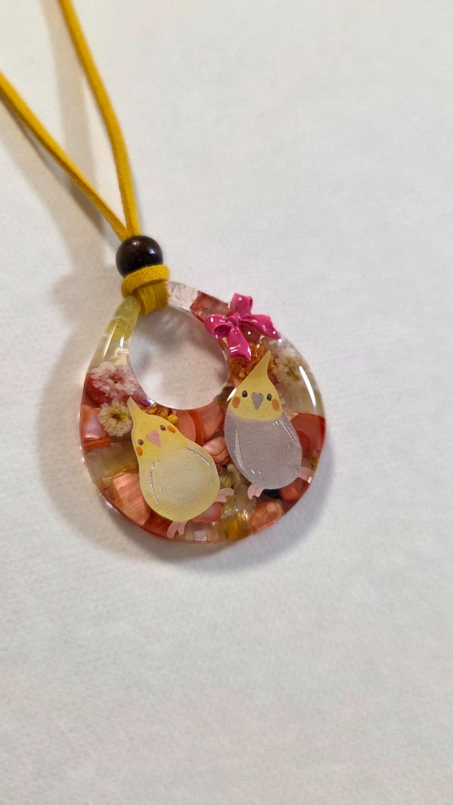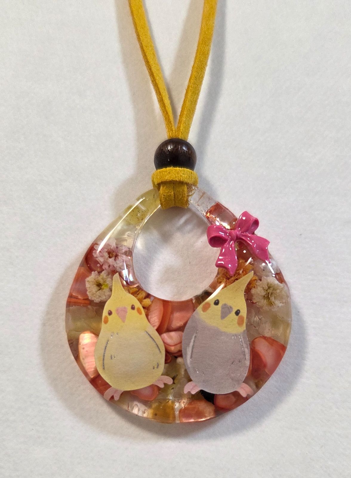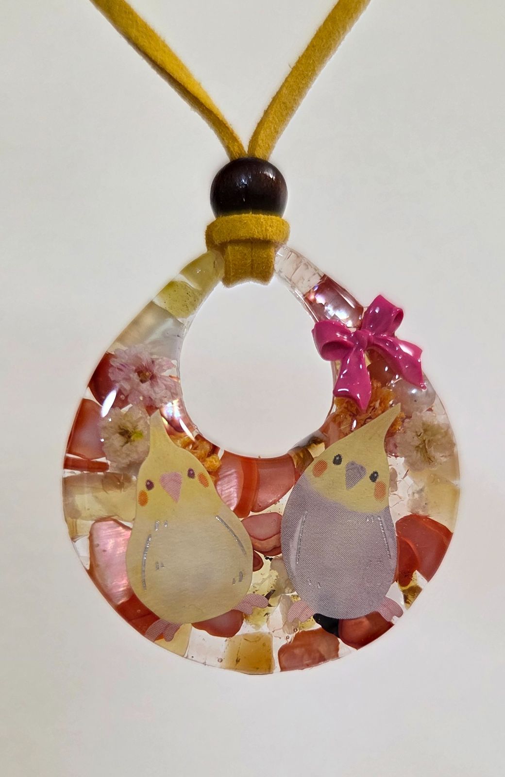 オカメインコちゃん天然石とドライフラワーレジンネックレス✨