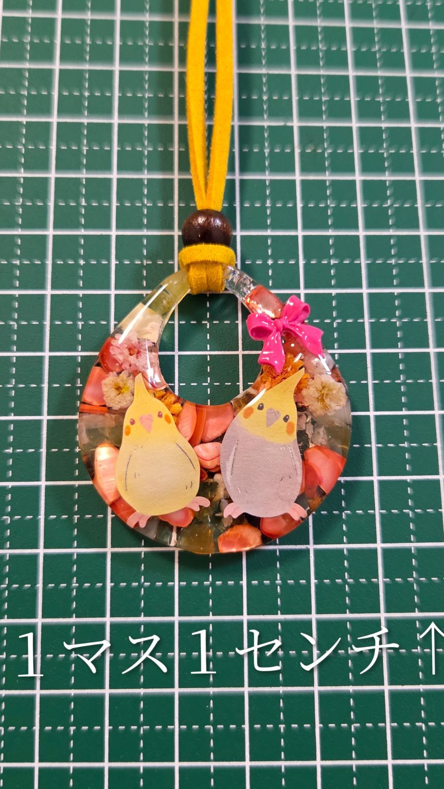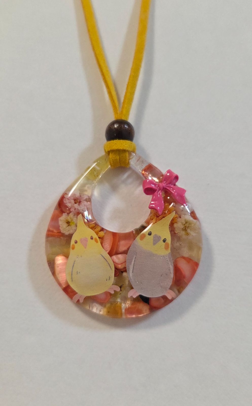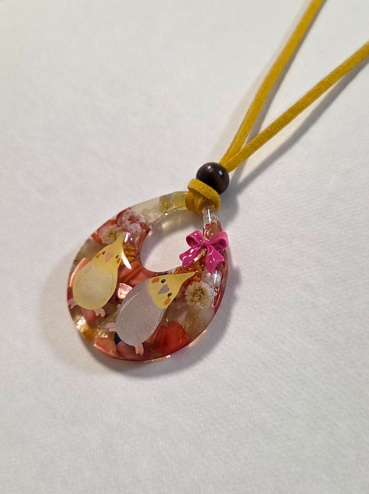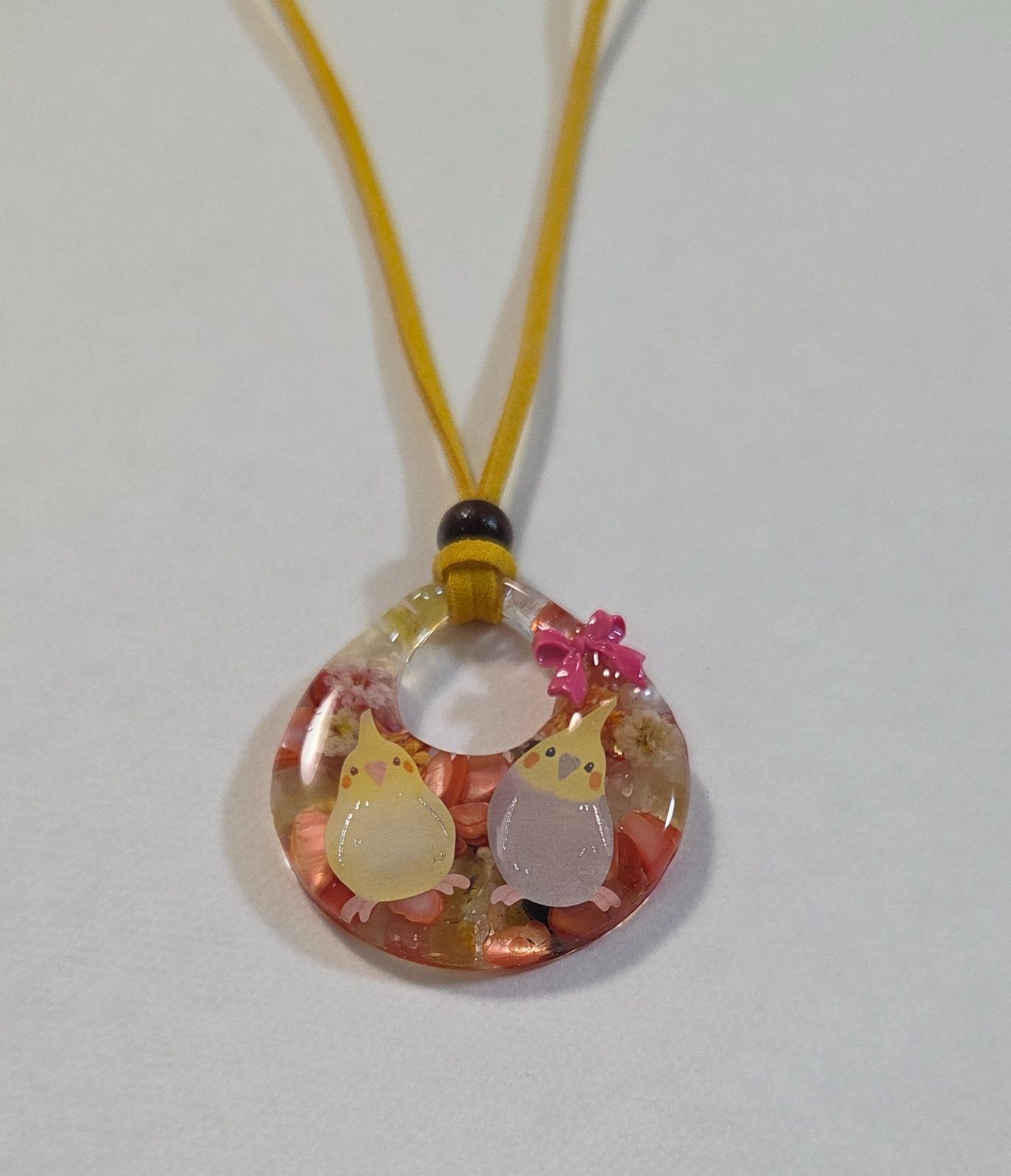 オカメインコちゃん天然石とドライフラワーレジンネックレス✨