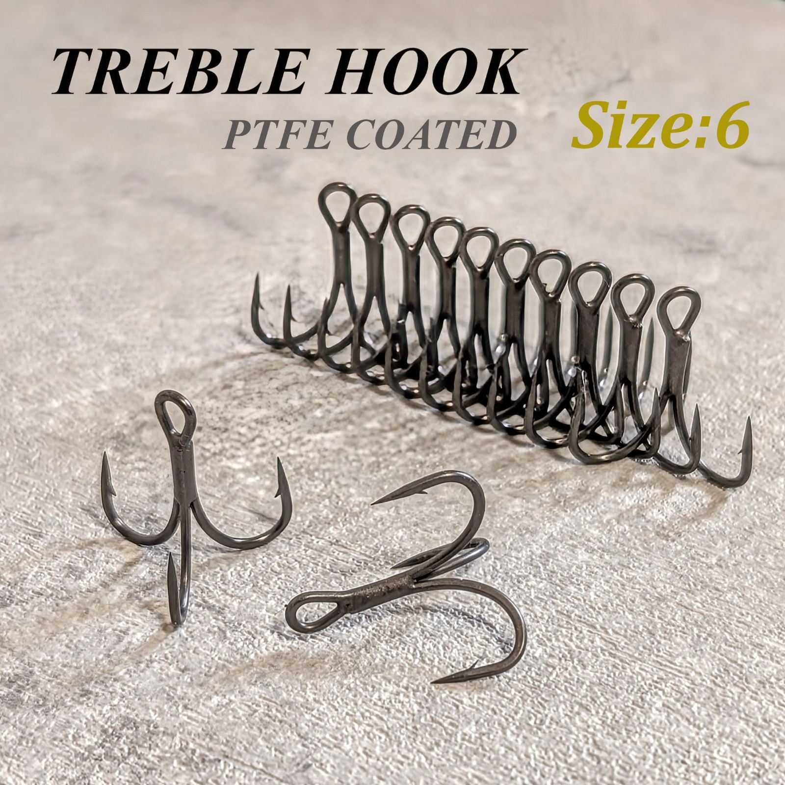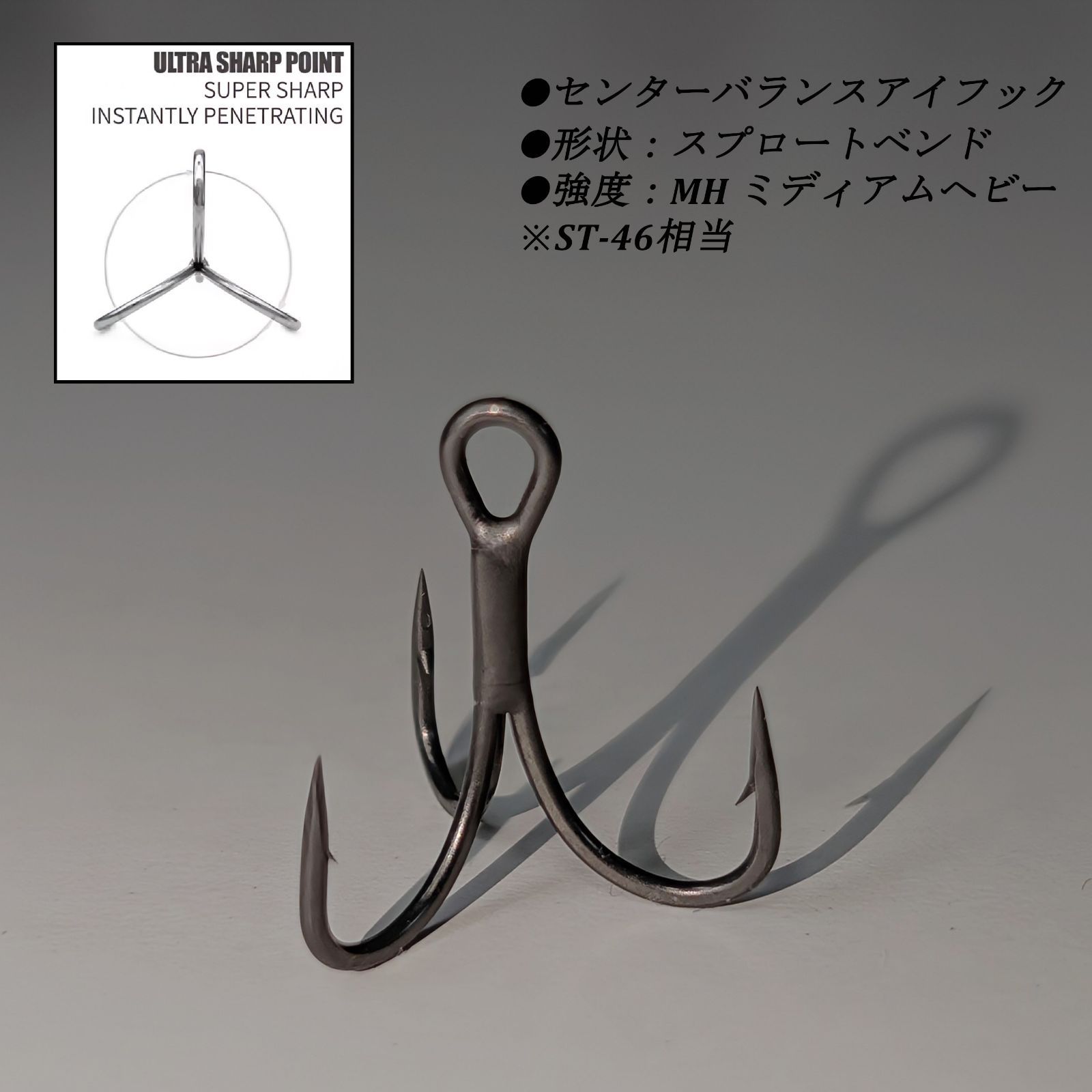 ・チタンコーティングにより滑らかでより高い耐久性と優れたフッキング性能を持つトレブルフック。