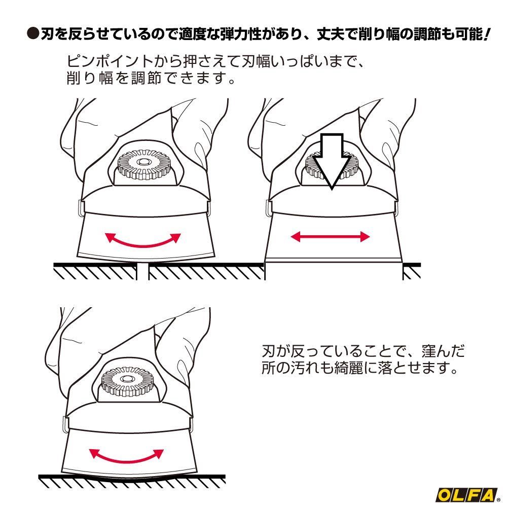 ピンポイントの作業から、刃幅いっぱいを使う作業まで力の入れ加減によって簡単に調節できます