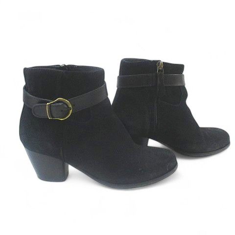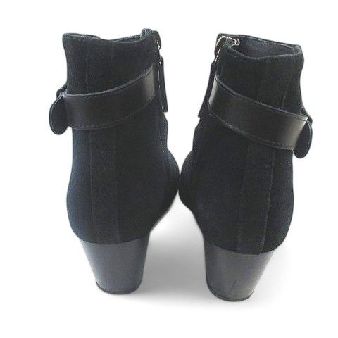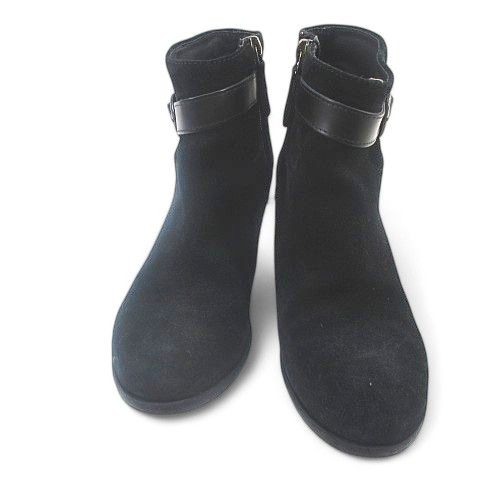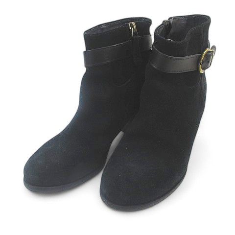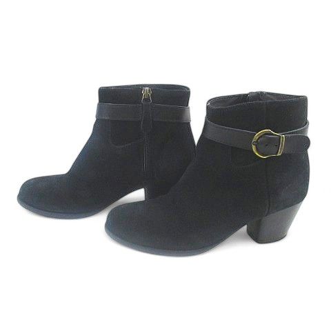 【商品名】銀座かねまつ GINZA Kanematsu ショートブーツ ベルトデザイン 35 ブラック 黒系 スエード イタリア製