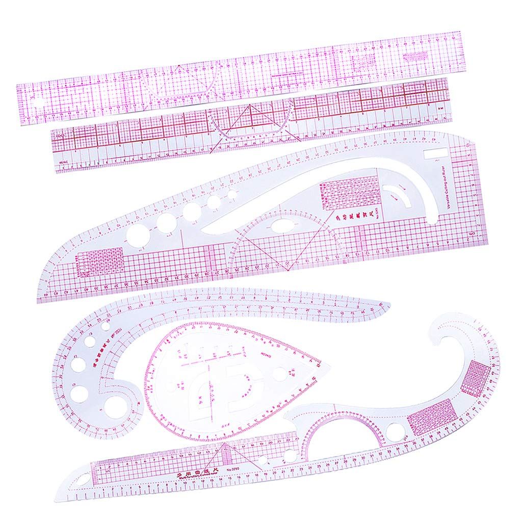 P Prettyia 6様式セット 裁縫用 定規 ルーラー セット 洋裁 多機能 ストレート 曲線 縫製定規 曲線定規 図画定規 洋裁 衣装 カーブ定規 手芸 設計 描画ルーラー カーブルーラー ソーイング定規 ドローイング テンプレート 裁縫道具 DIY手芸用