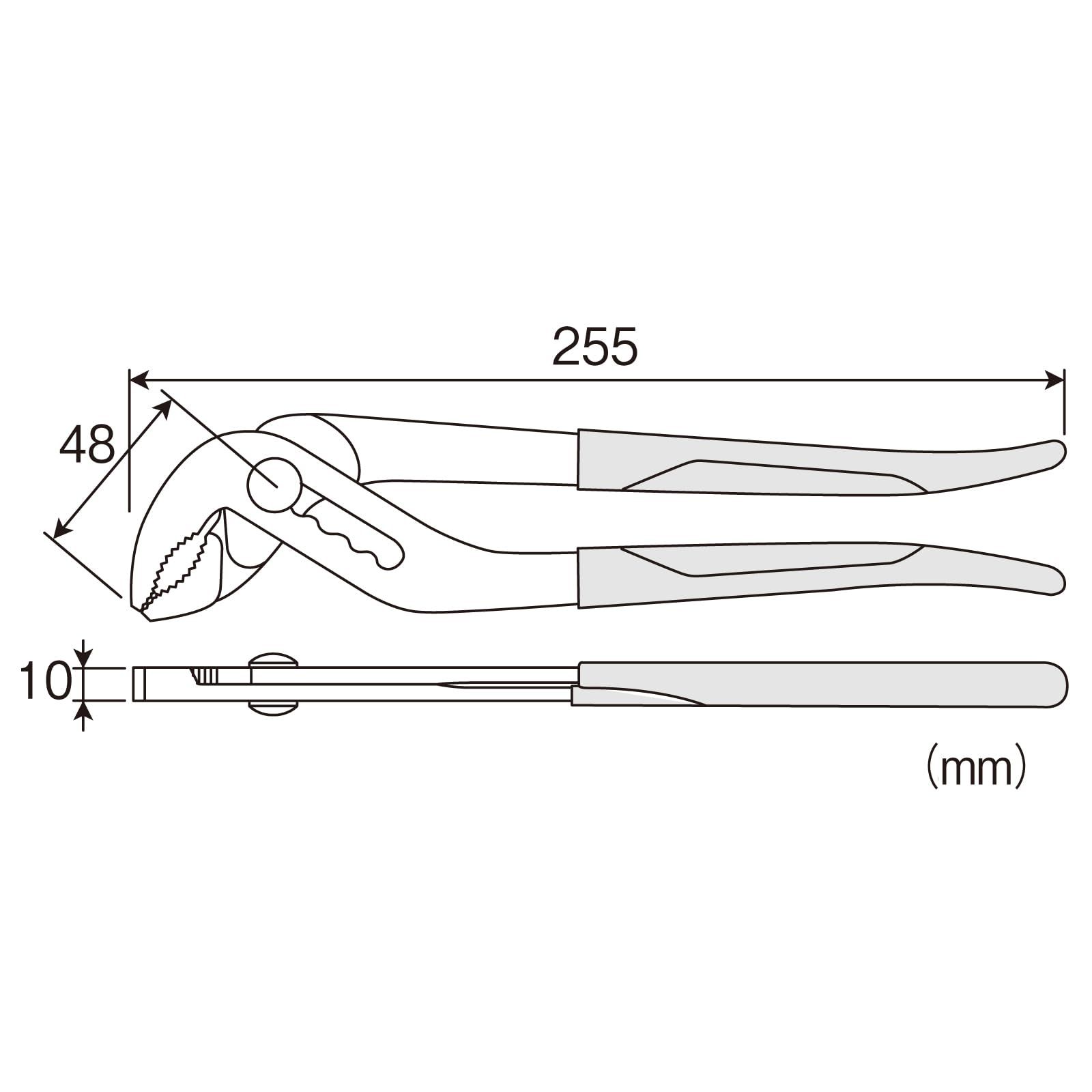 全長255mmのウォーターポンププライヤー。