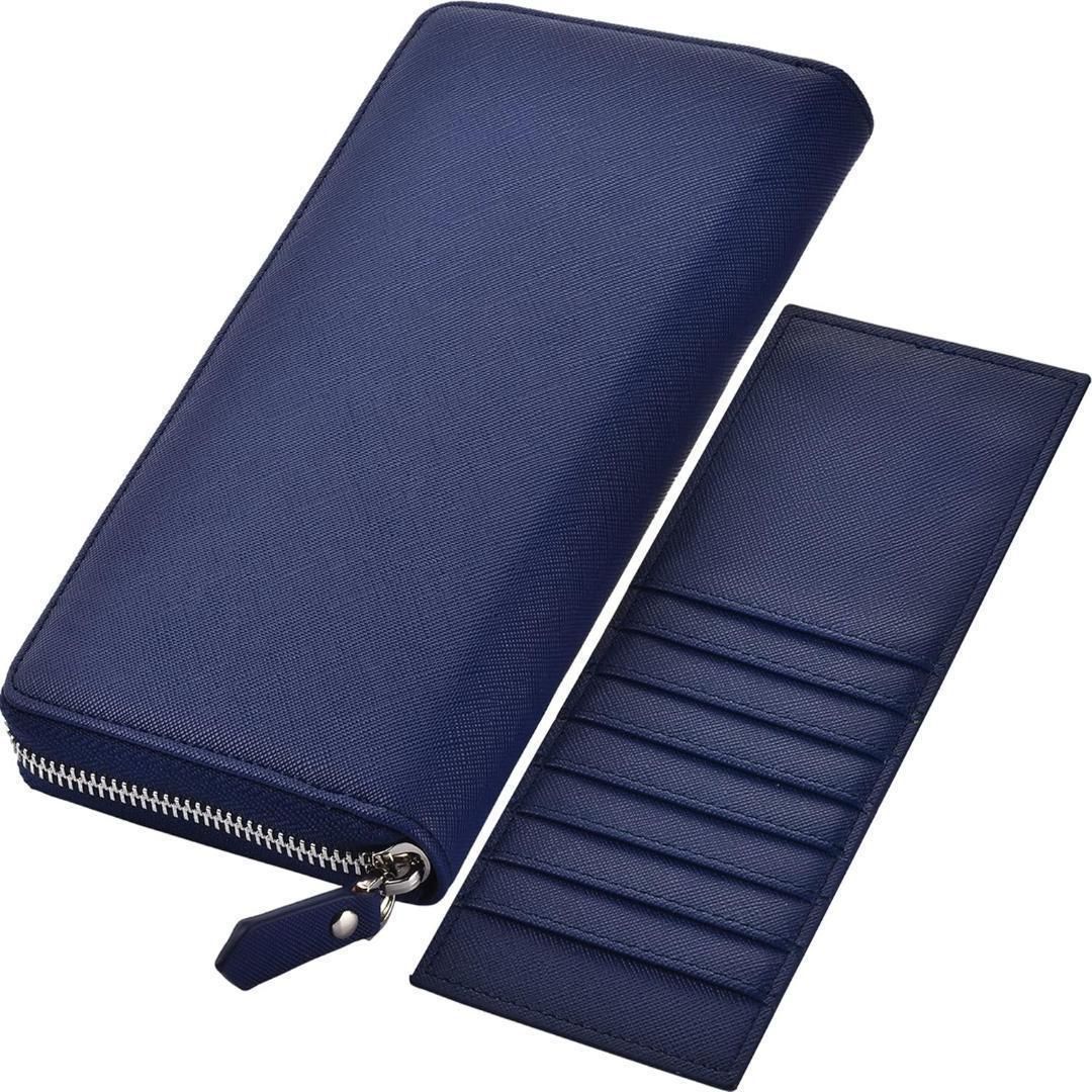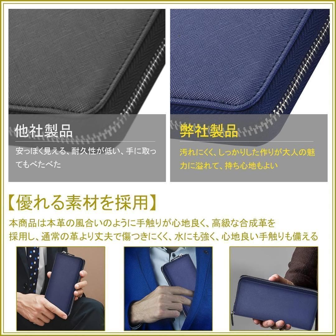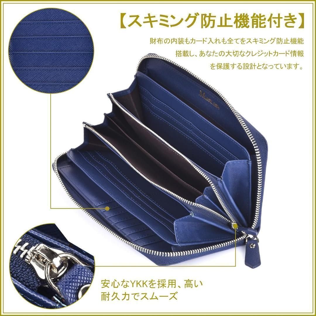 財布 長財布メンズ レディース 小銭入れ 大容量 機能性 RFIDスキミング防止機能付き 大きく開く使いやすさと上質さを兼ね備える ビジネス オシャレ 父の日 上品なプレゼント (ネイビー)