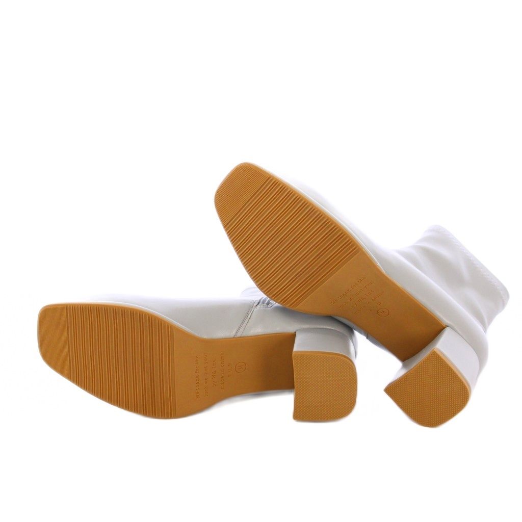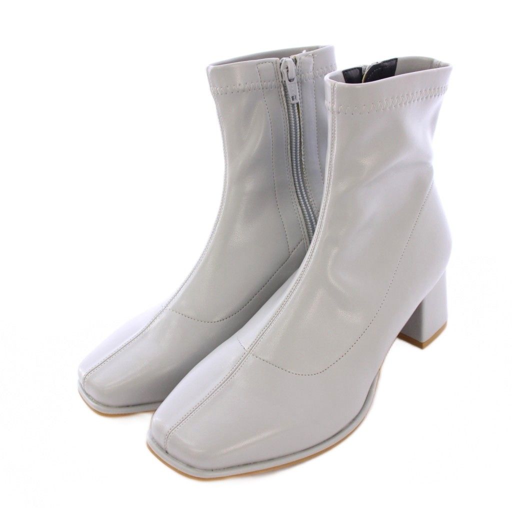 【商品名】オリエンタルトラフィック ORIENTAL TRAFFIC オーバースクエアトゥストレッチブーツ ショート チャンキーヒール フェイクレザー ワンカラー M 水色 ライトブルー 21416 /BB