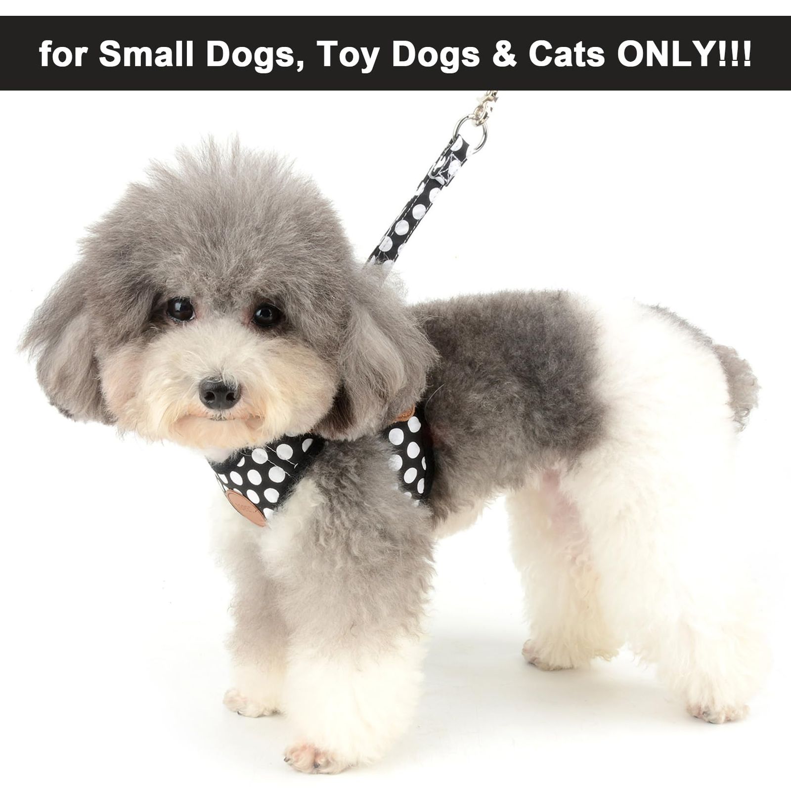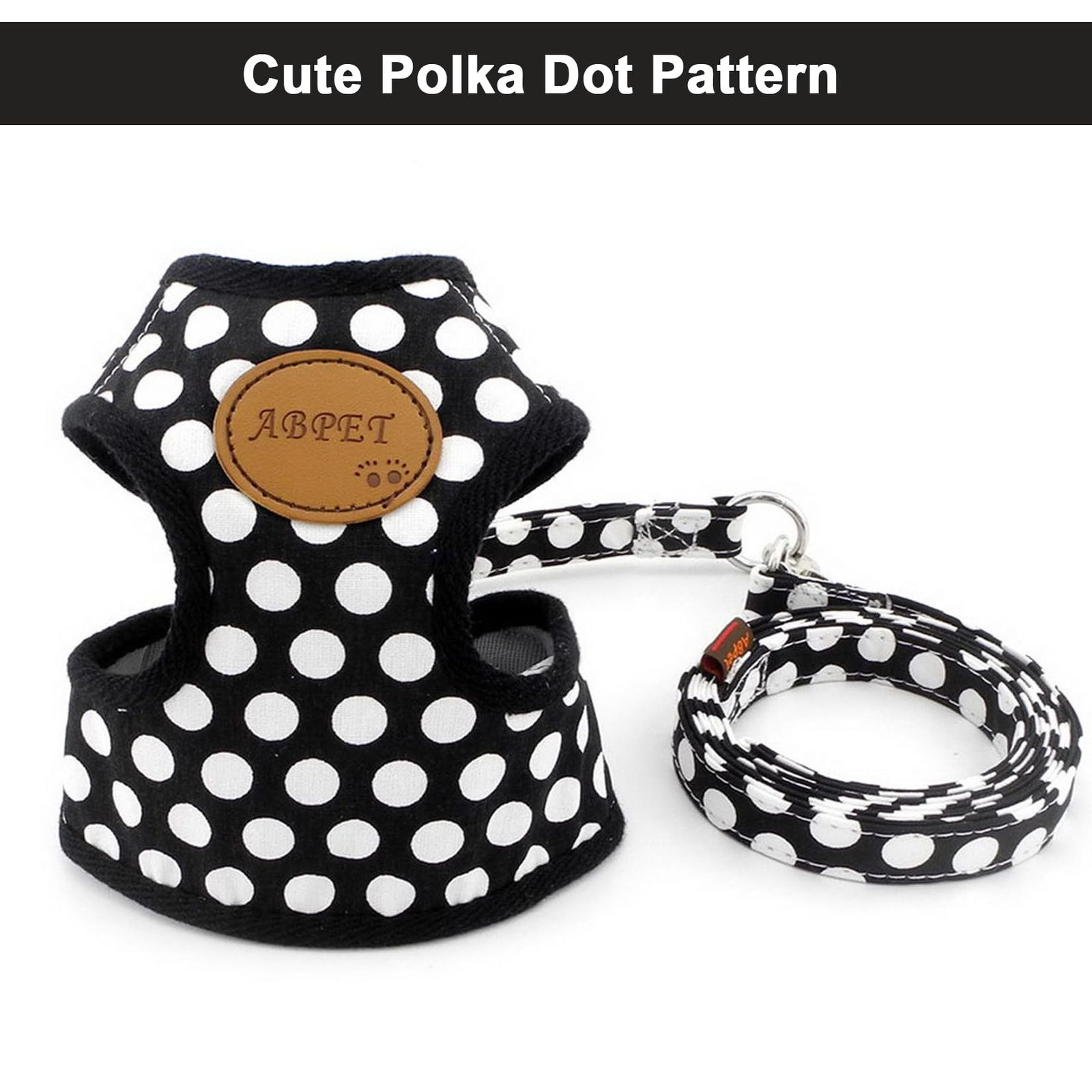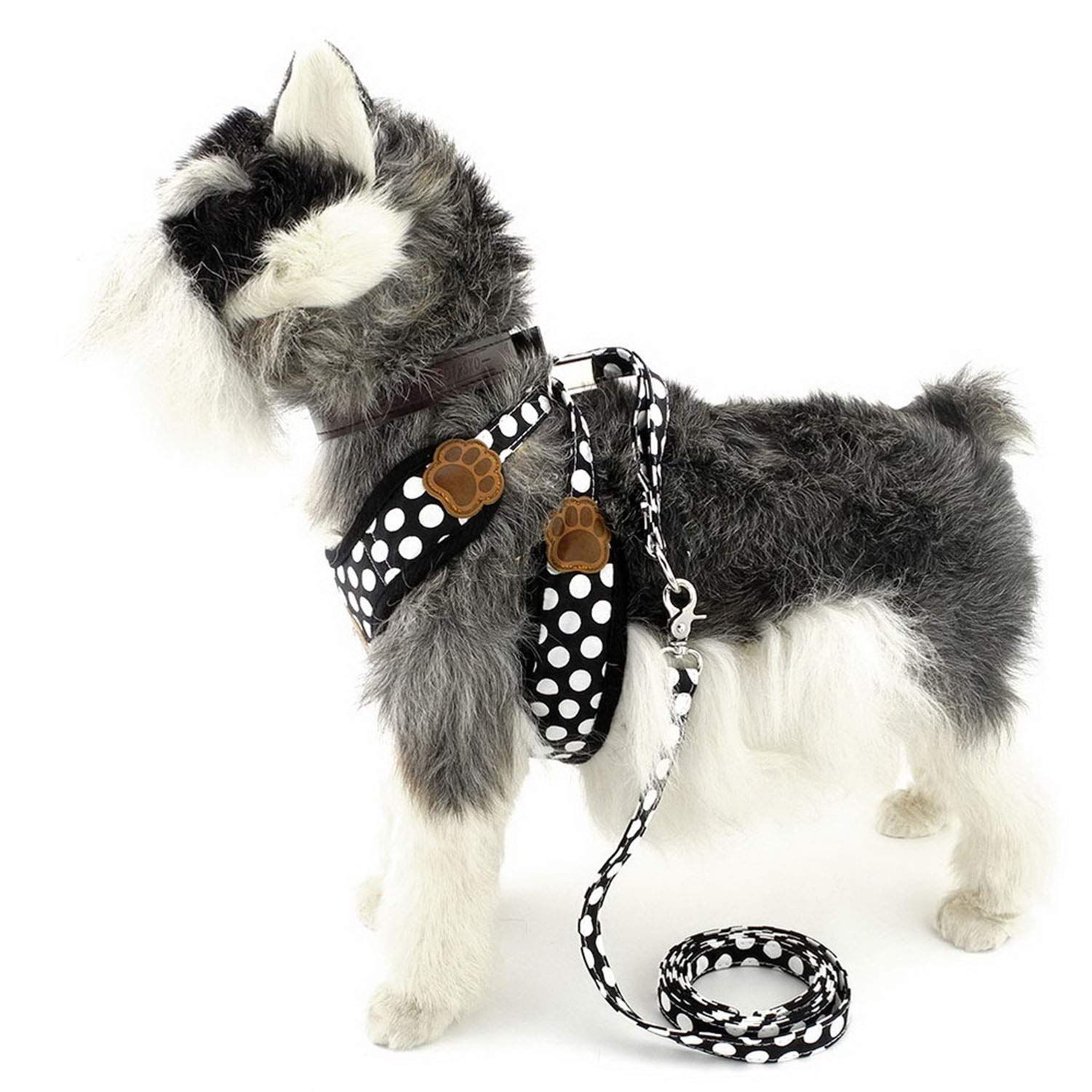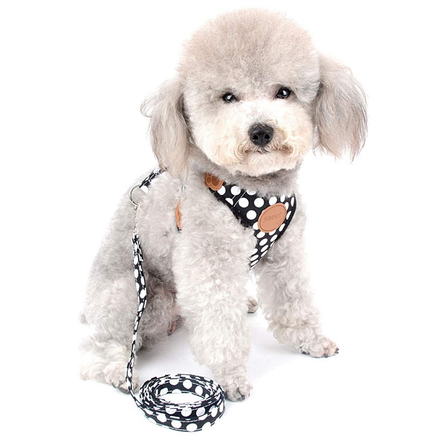 ZUNEA 犬用 ハーネス リード セット 可愛い ドット柄 ソフトメッシュ 胴輪 チワワ用 散歩 ペット用品 ドッグウェア 小型犬用 ブラック S