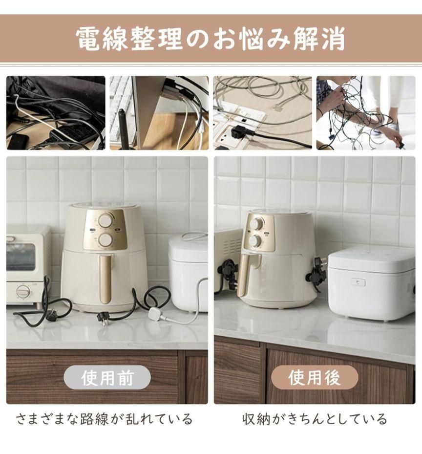 電源コードオーガナイザーは、すべてのキッチン機器のワイヤーを整頓し、キッチンの作業効率を向上させます。面倒なキッチン家電の電源コードについて心配する必要はありません。