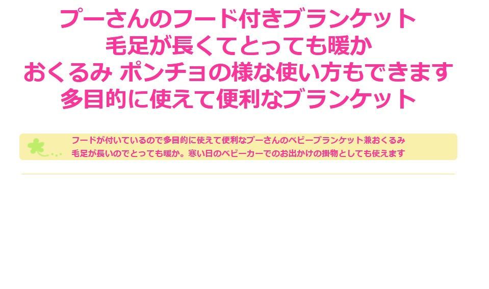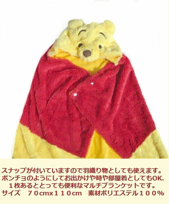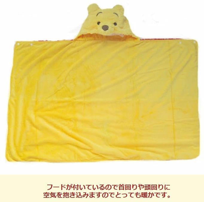 寒い季節に1枚あると便利なプーさん柄のフード付きマルチブランケットが出来ました。