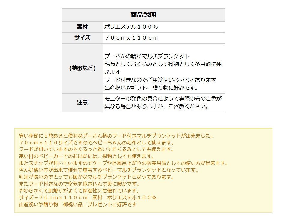 70cmx110サイズですのでベビーちゃんの毛布として使えます。