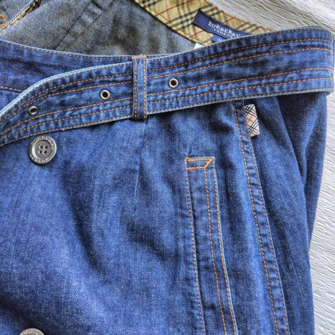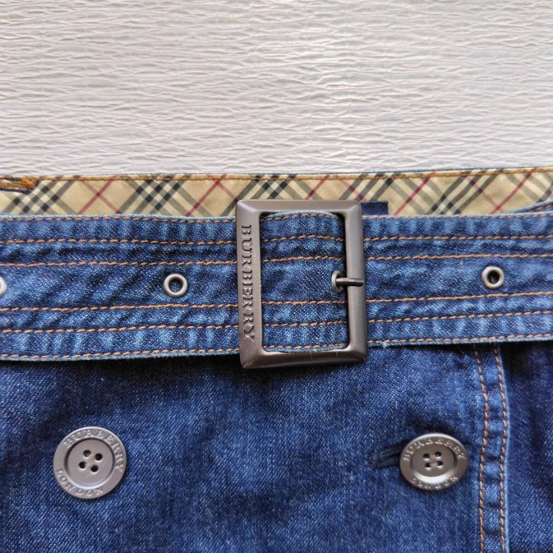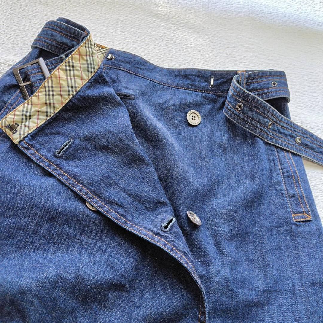 ブランドの象徴であるトレンチコートを、デニムの巻きスカートに再構築した、遊び心あふれるデザインです。フロントに並んだダブルのボタン、がっしりとしたベルトが、着こなしの主役になる存在感を放ちます。そして、ウエストの内側にさりげなく覗くノバチェックが、バーバリーであることの誇りを静かに物語っていますね。