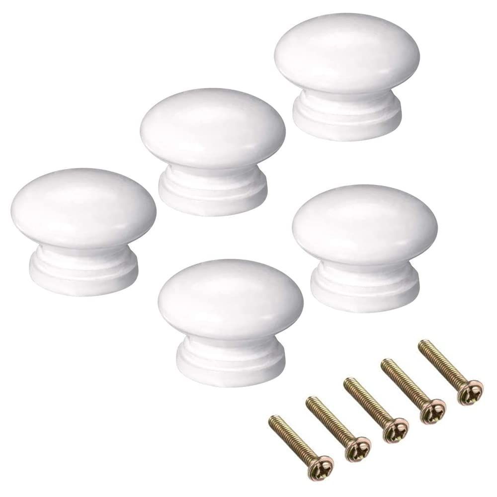 5個セット 木製 取っ手 つまみ ノブ ナチュラル ウッド たんす 引き出し 家具 扉 金物 棚 ねじ付き ホワイト