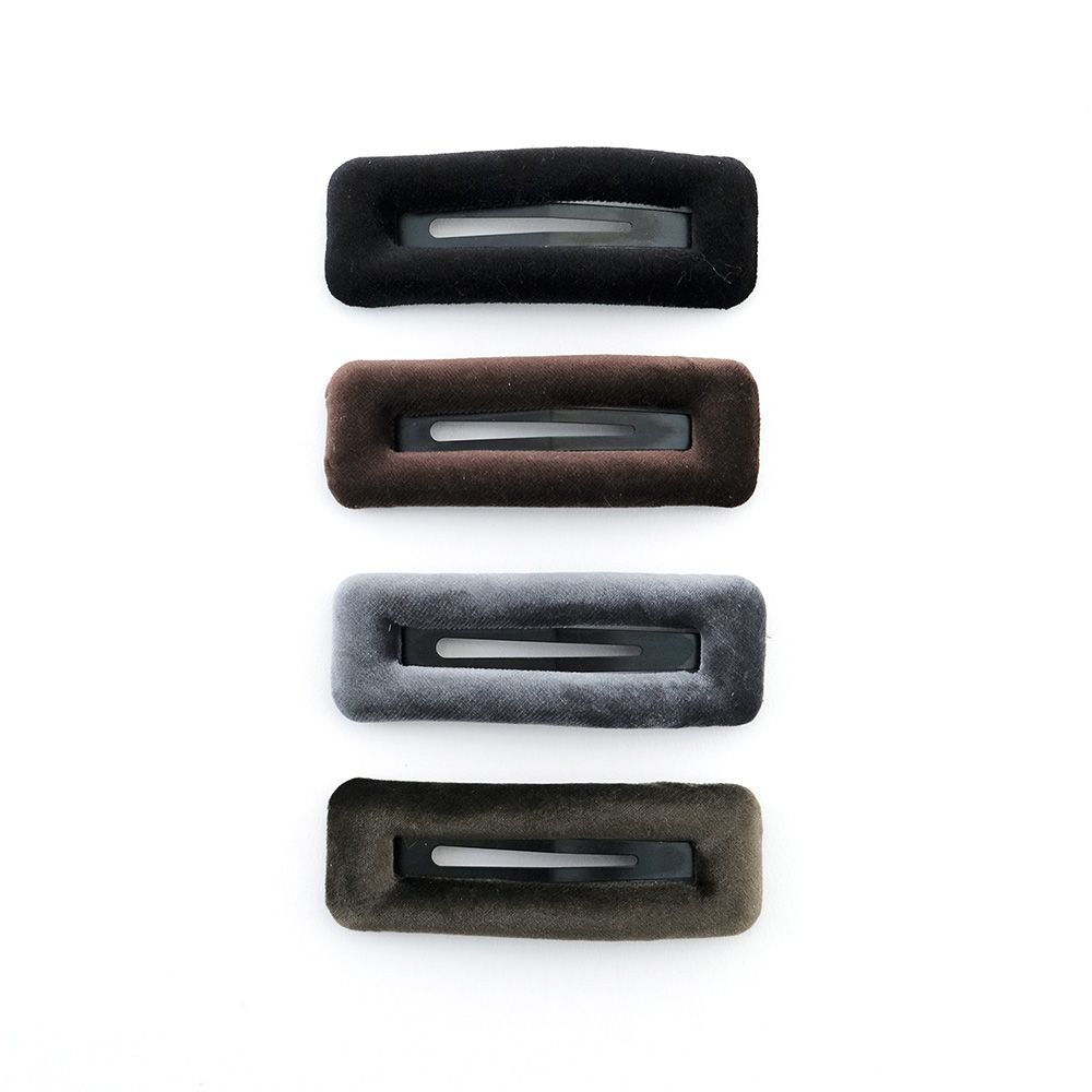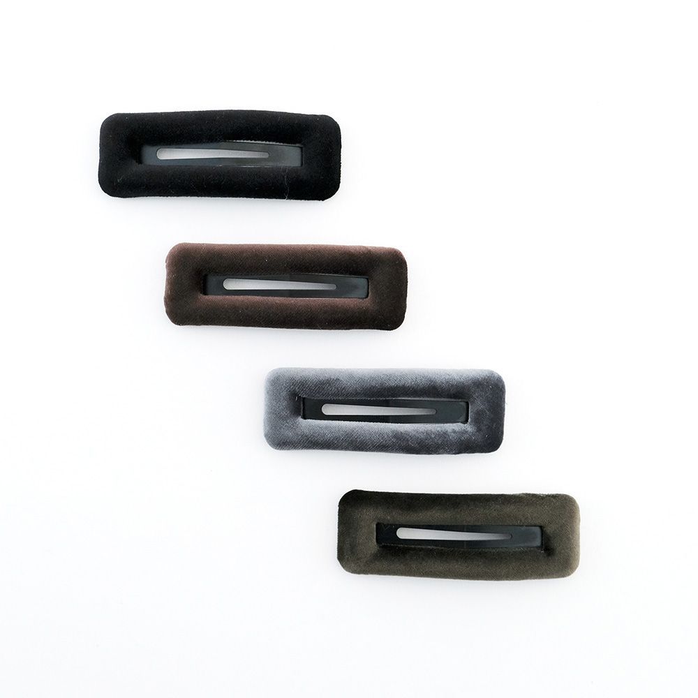 落ち着いた色合いと上質なベロア素材が魅力のヘアピン。シンプルながらもクラシックなカラーと高級感のある質感が、スタイリングに品の良いアクセントを添えます。季節感を演出できるデザインで、デイリーはもちろん、フォーマルなシーンや特別なイベントにもぴったり。4色のカラーバリエーションで、シーンや気分に合わせたコーディネートを楽しめる、大人のためのヘアアクセサリーです。