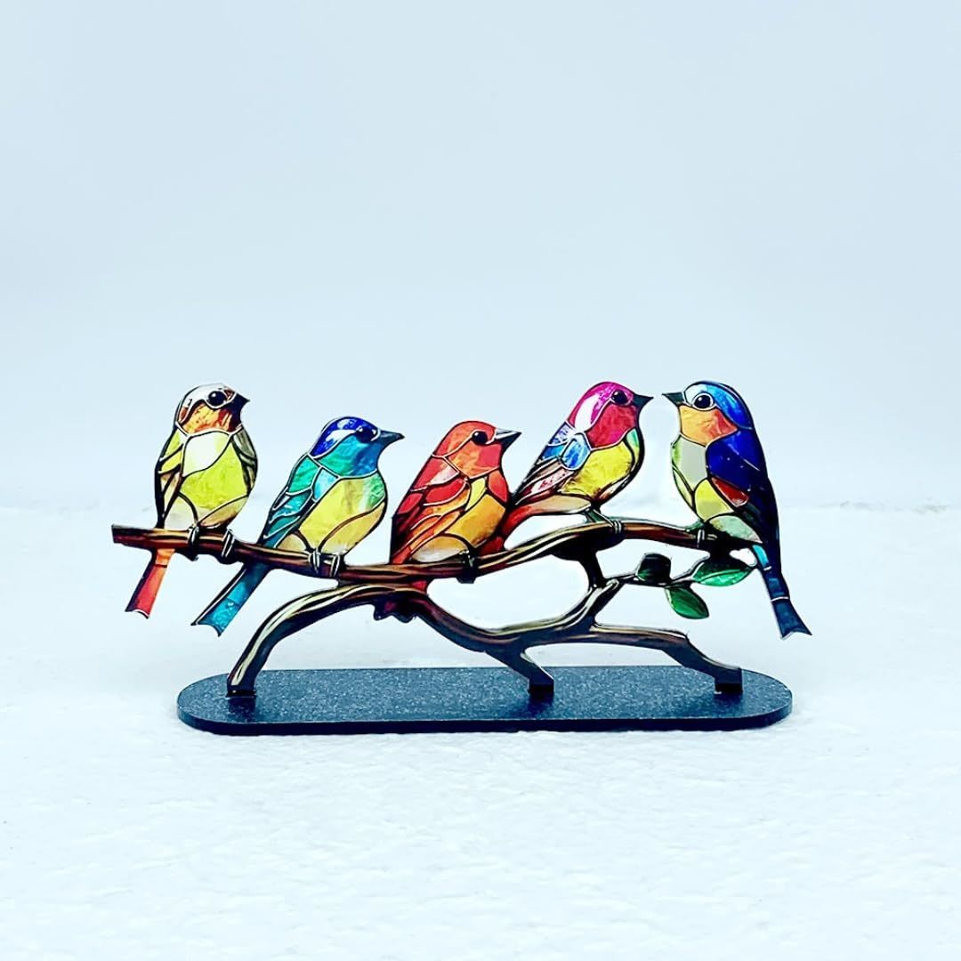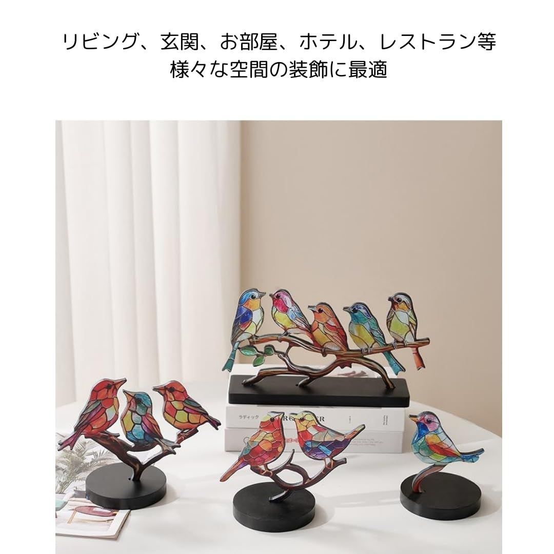 オーナメント 鳥 置物 オブジェ リビング インテリア オシャレ かわいい 雑貨 置き物 小鳥 ガラス パネル デコレーション 壁 装飾 飾り (5匹の小鳥)