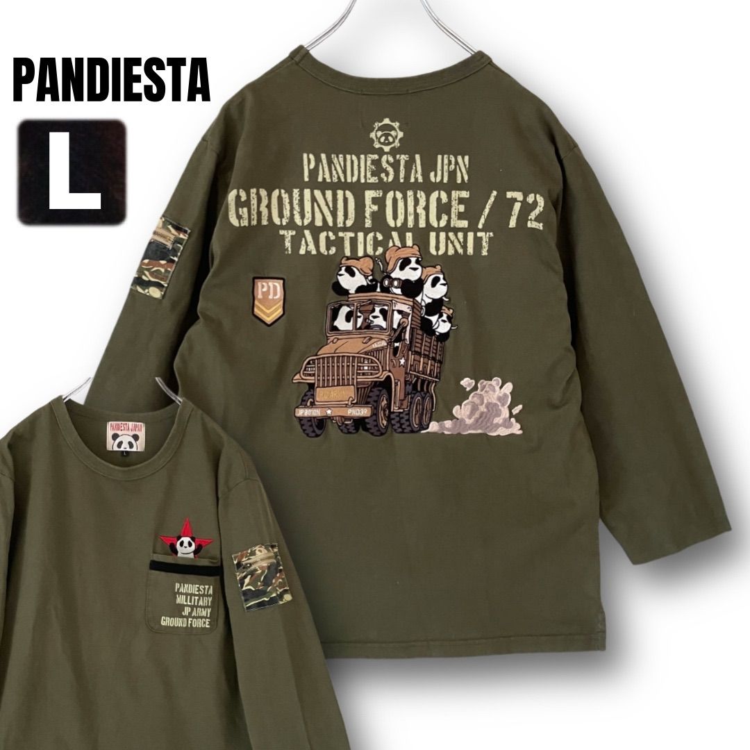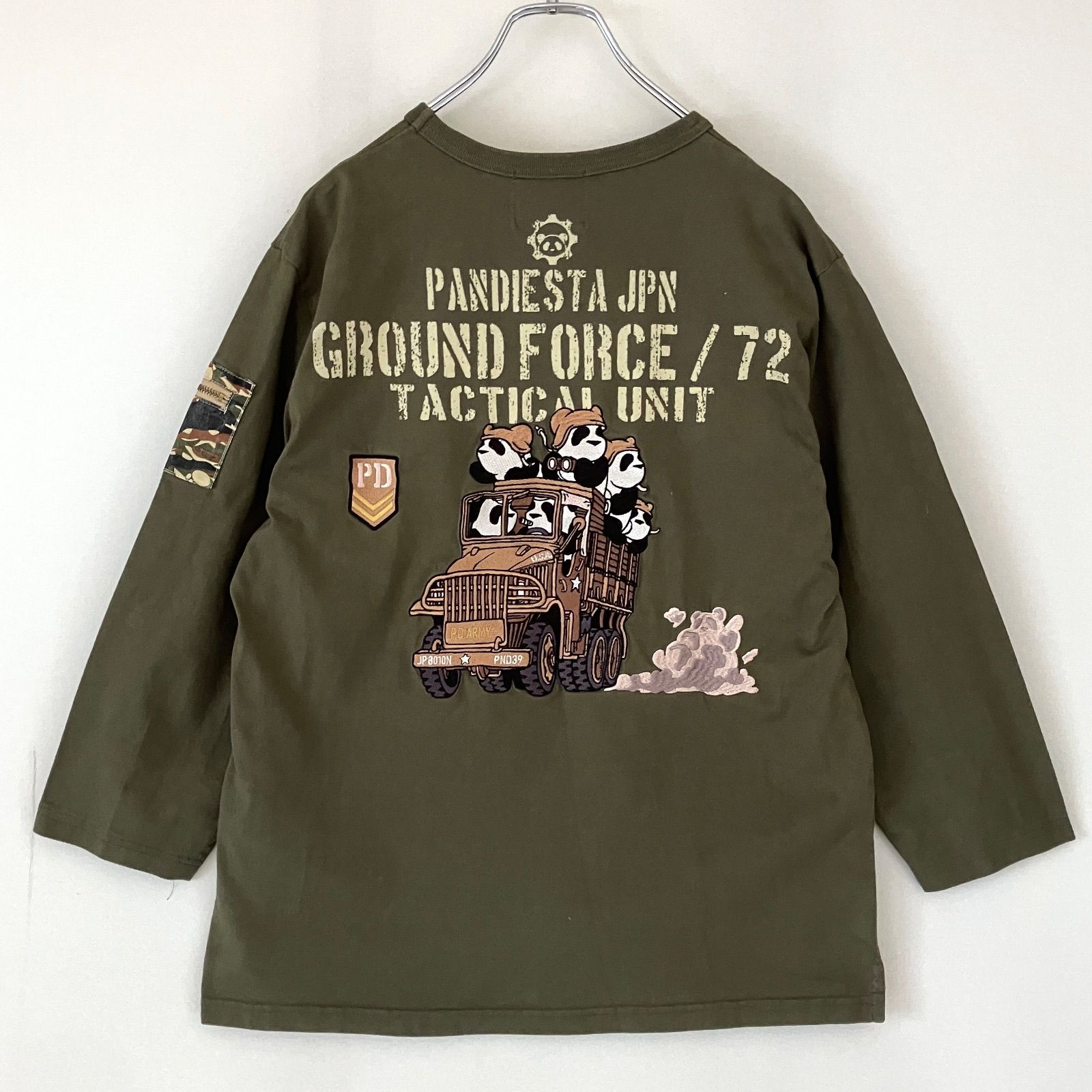 軍用輸送車ハコ乗りするたくさんのかわいい熊猫たちを刺繍