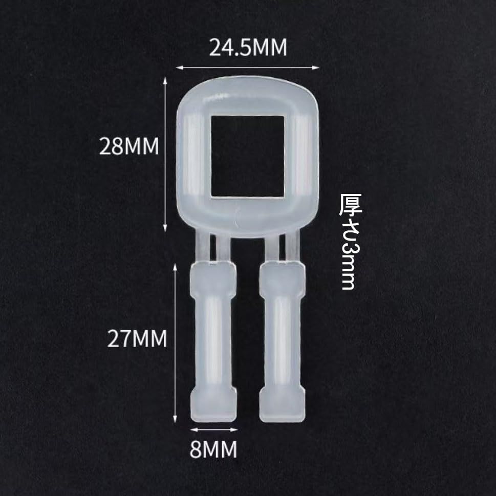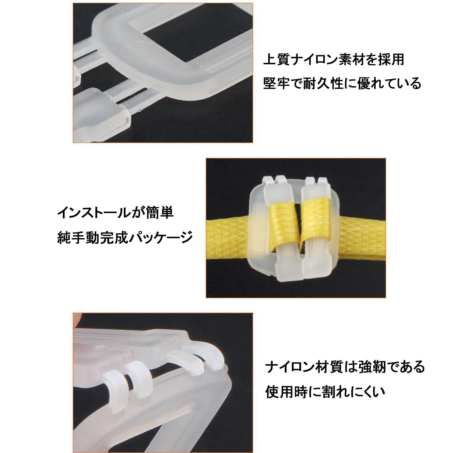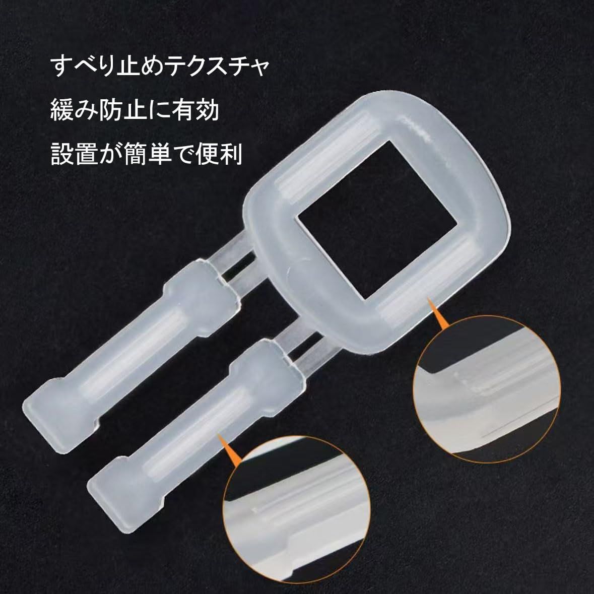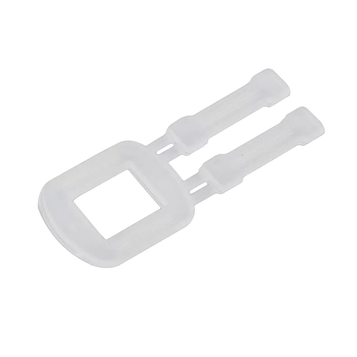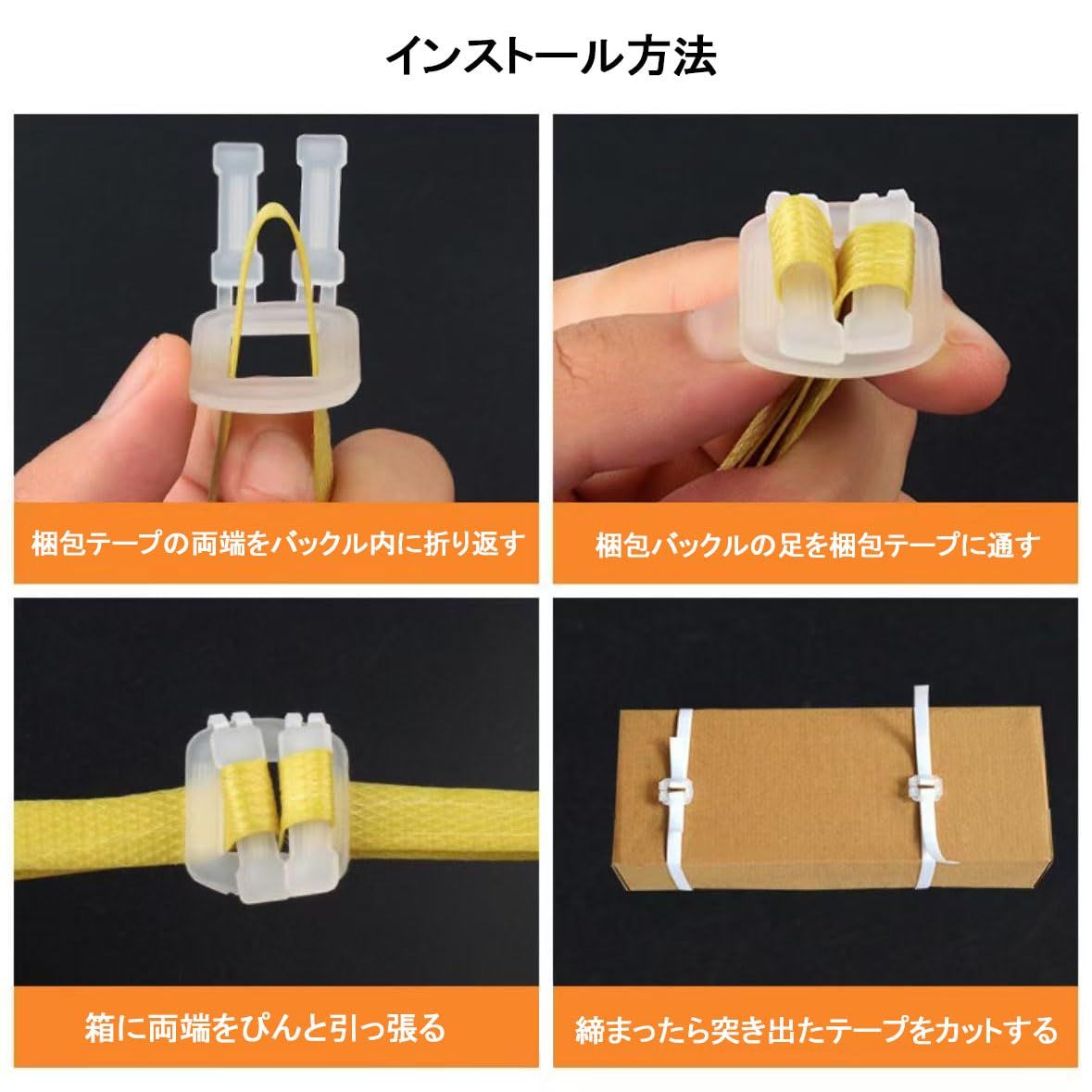 PPバンド用ストッパー100個セット。透明プラスチック製で目立たず、手動での梱包作業に最適。工業部品の梱包から一般の荷造りまで、様々なシーンで活躍する実用的な梱包用品です。
