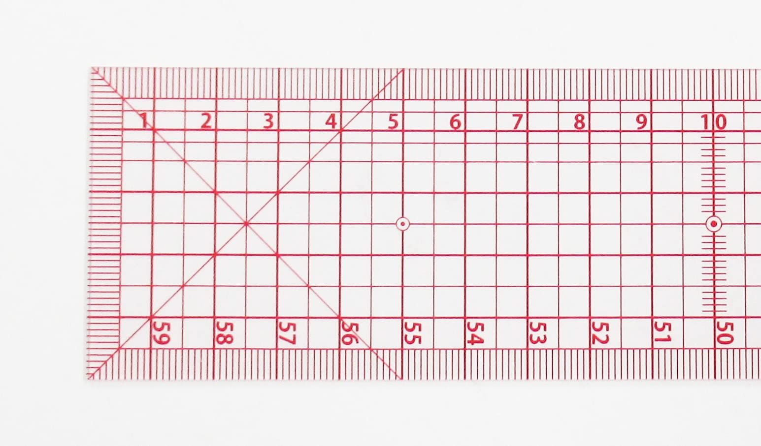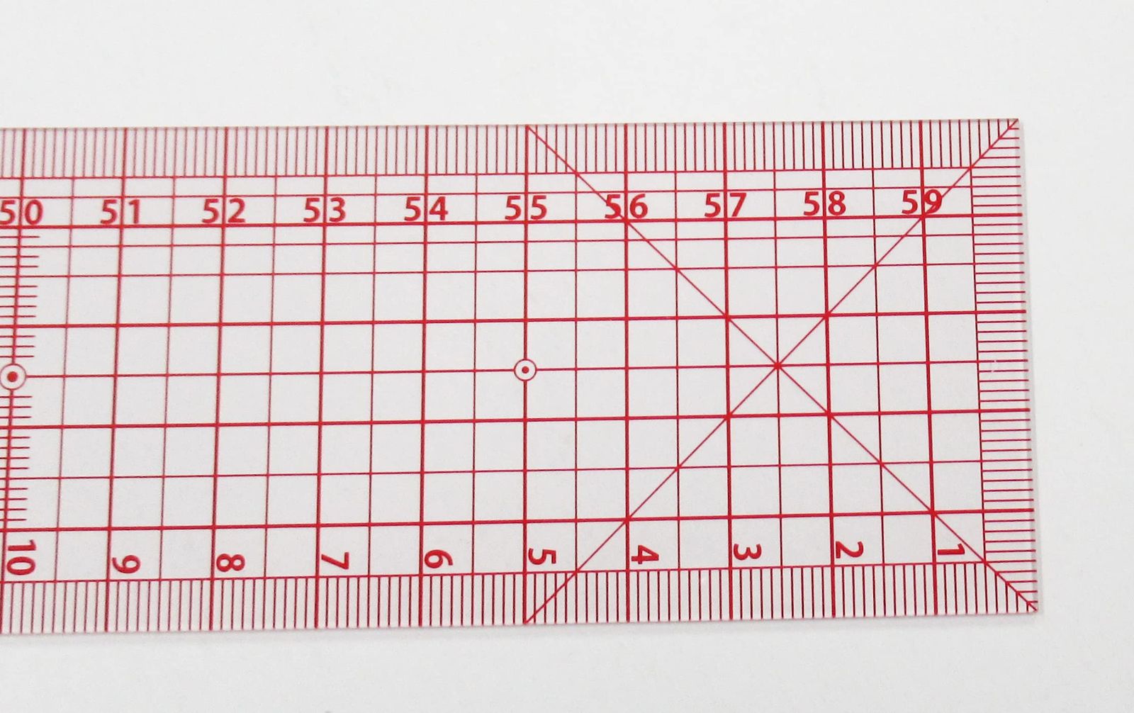 7mm・12mmの縫い代ラインと、定規の中央と両端にバイヤスが入っています。
