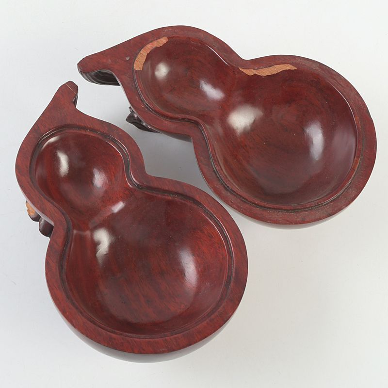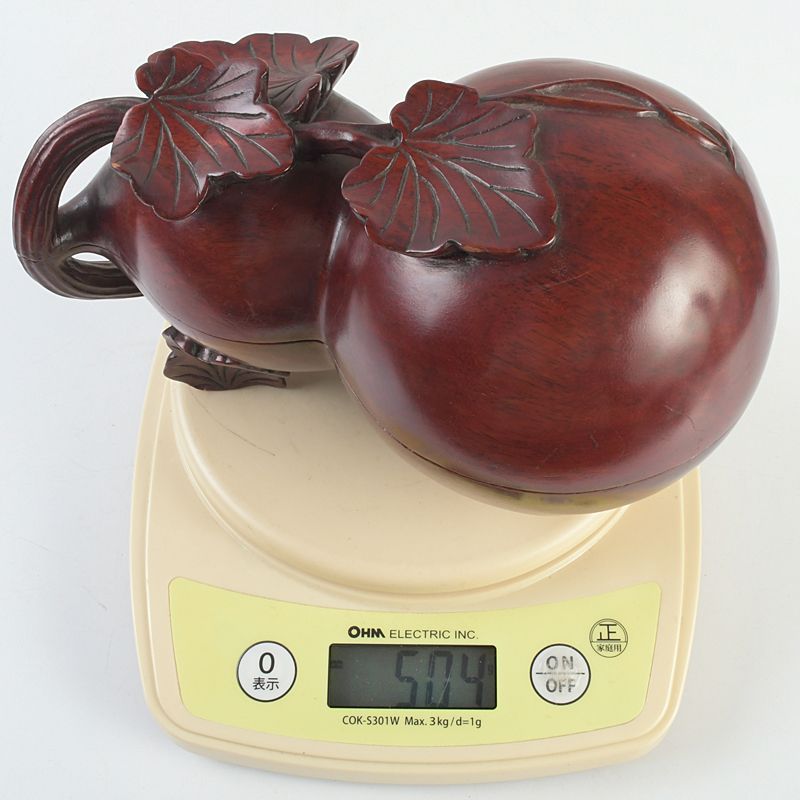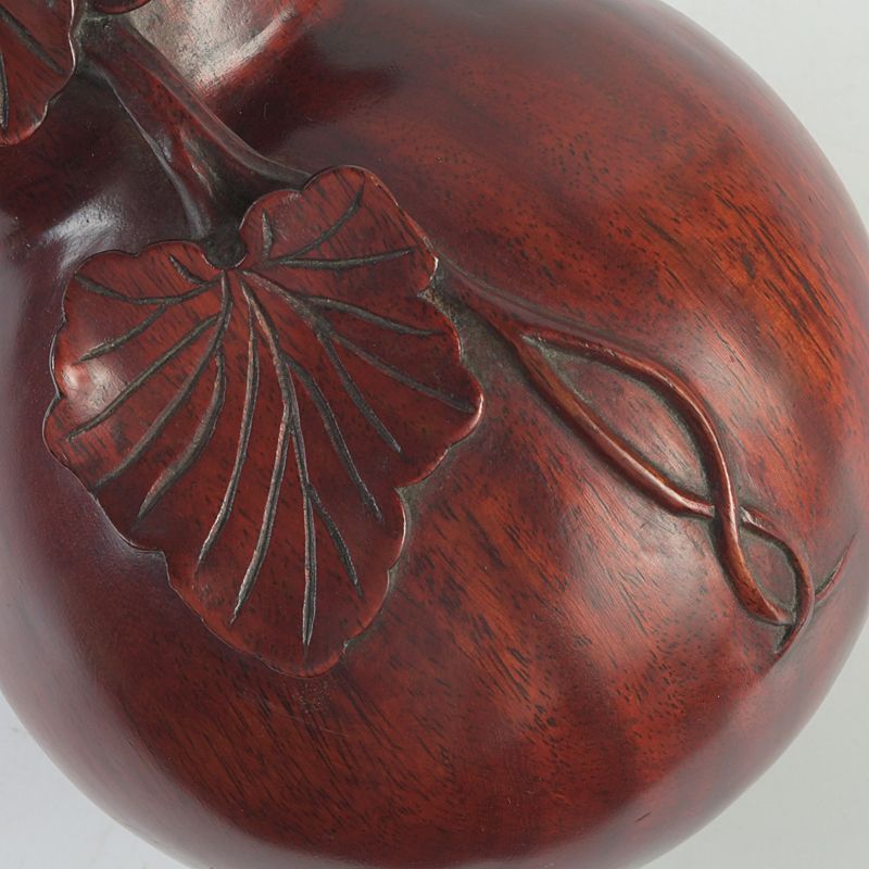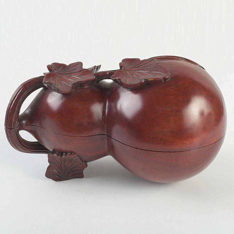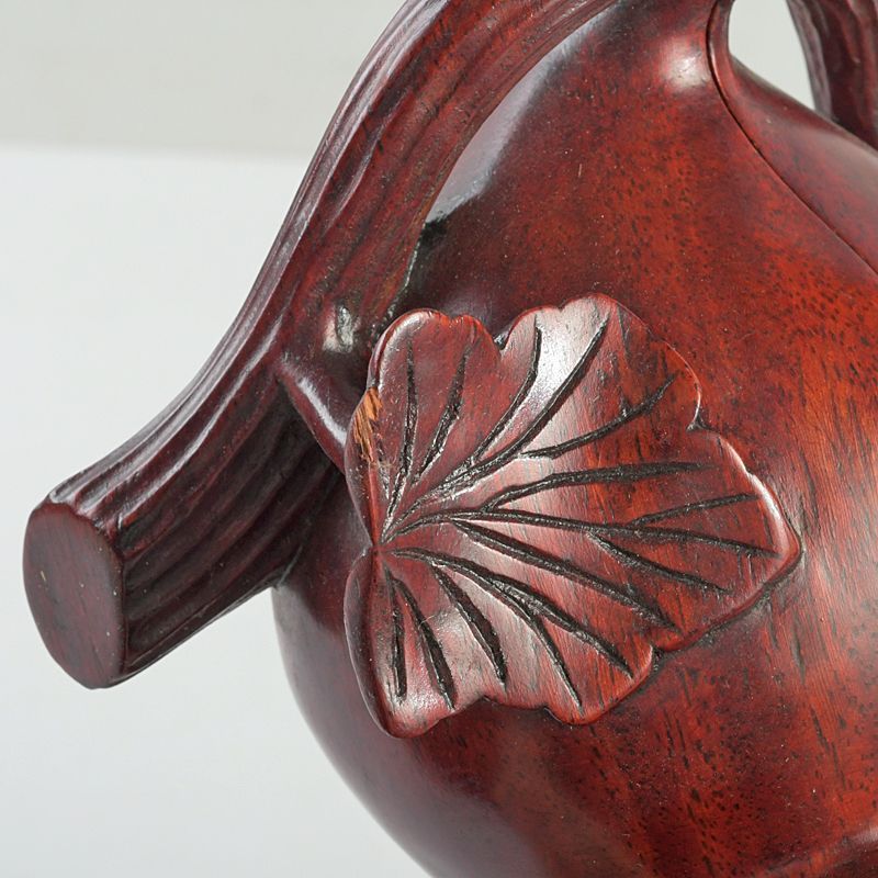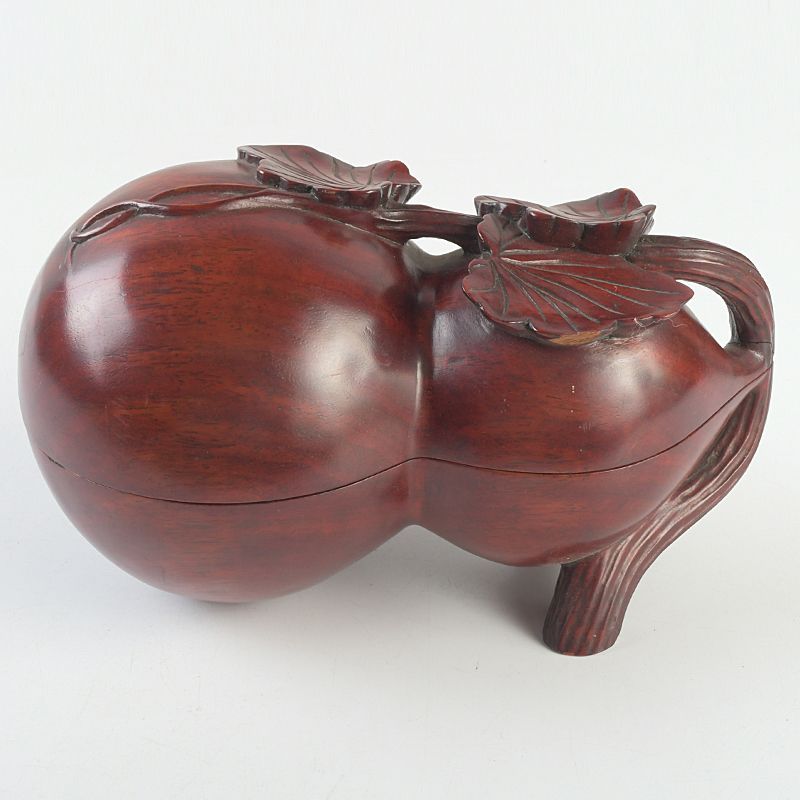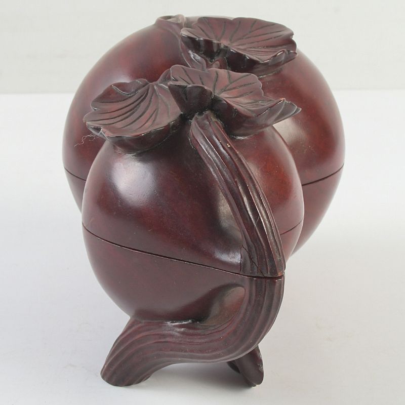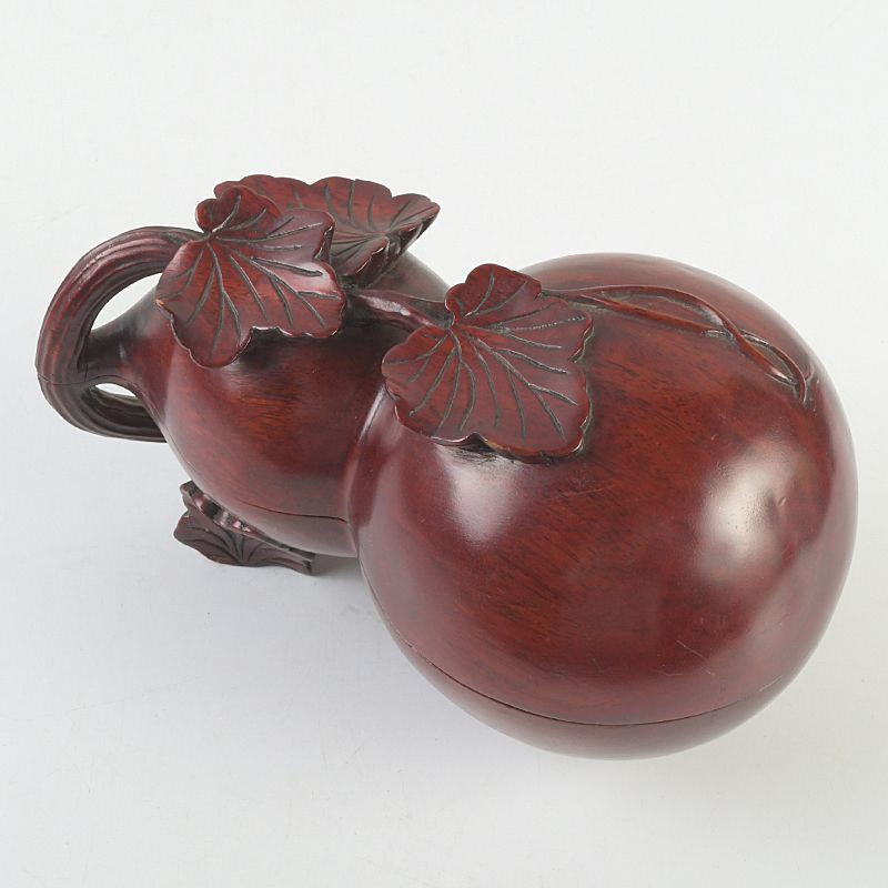 中国 唐木紫檀製 瓢箪形 蓋物 N S40