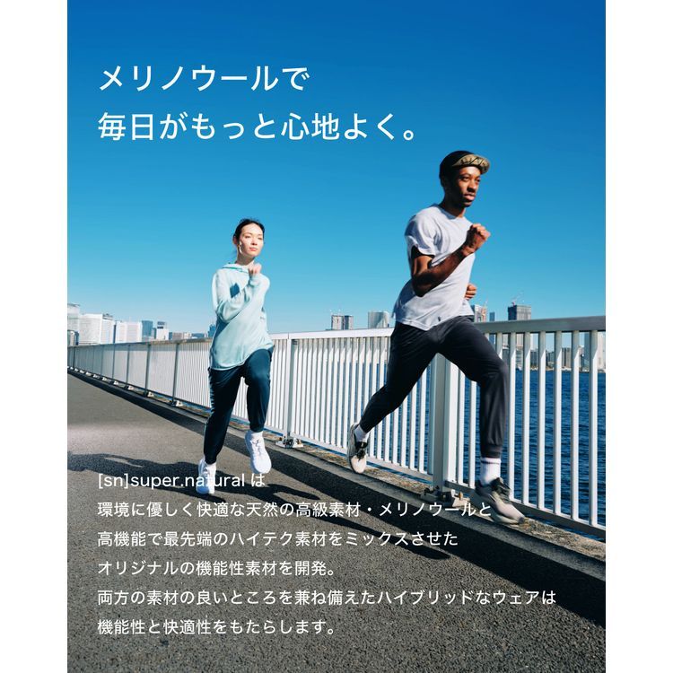 メリノウールのさらりとした風合いと吸湿効果、抗菌・防臭効果、UVカット効果に、更にポリエステルの優れた速乾性と耐久性も備えました。家庭での洗濯も可能。