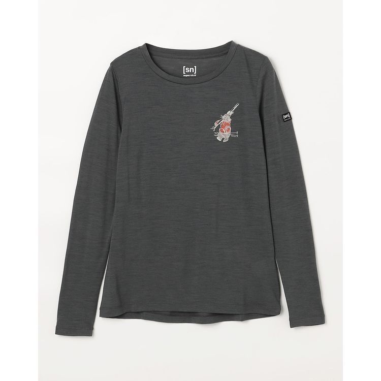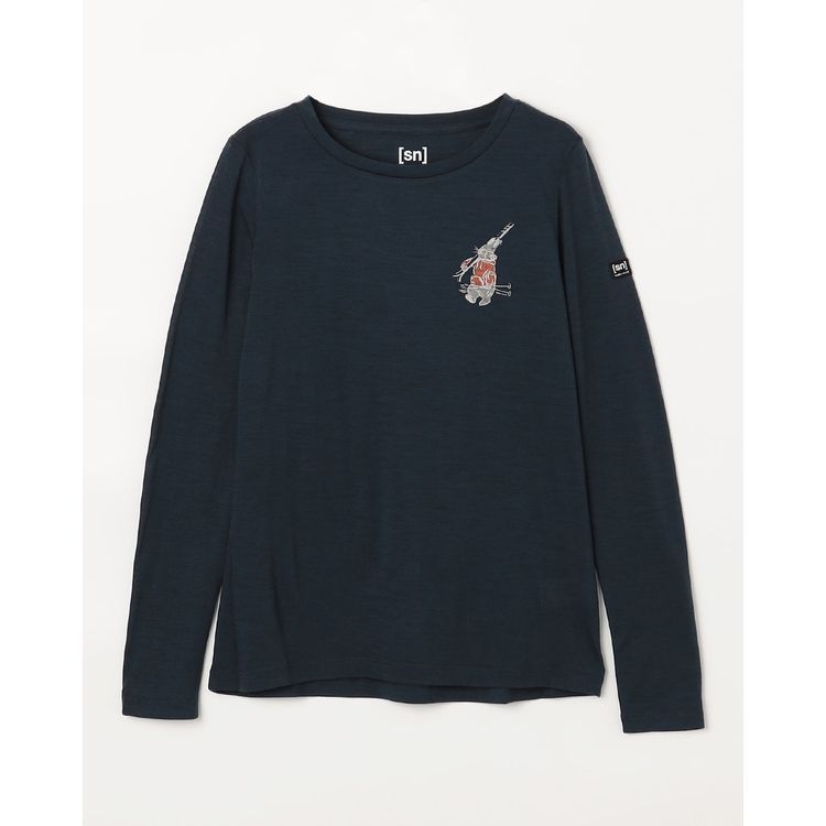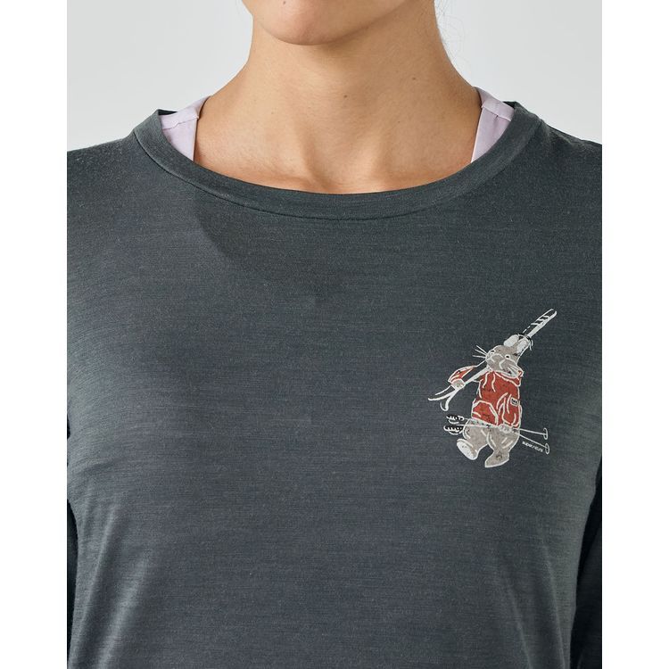 愛らしい子うさぎが、自分よりも大きなスキー板を一生懸命運んでいる姿を描いた、とびきりキュートなグラフィックTシャツ。
