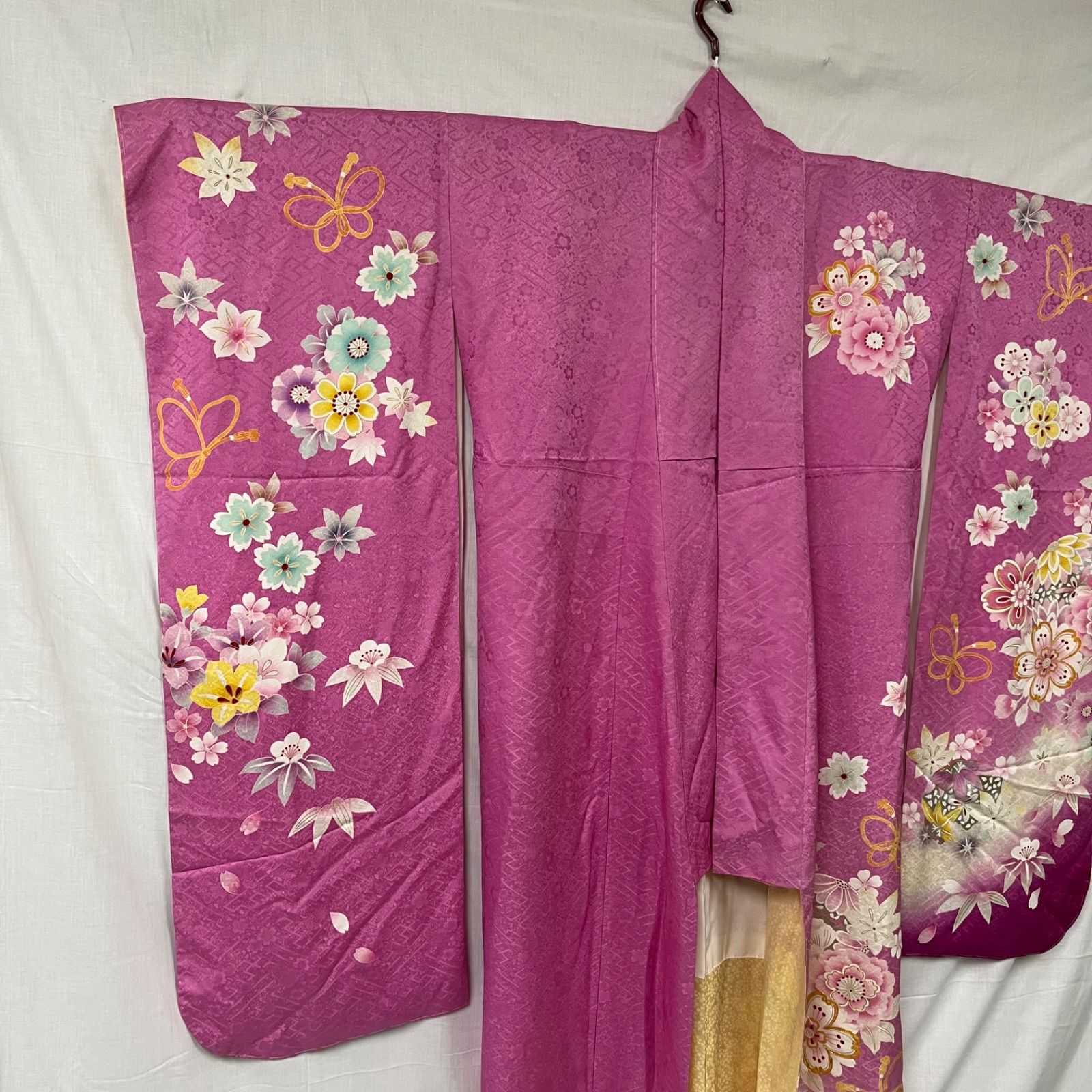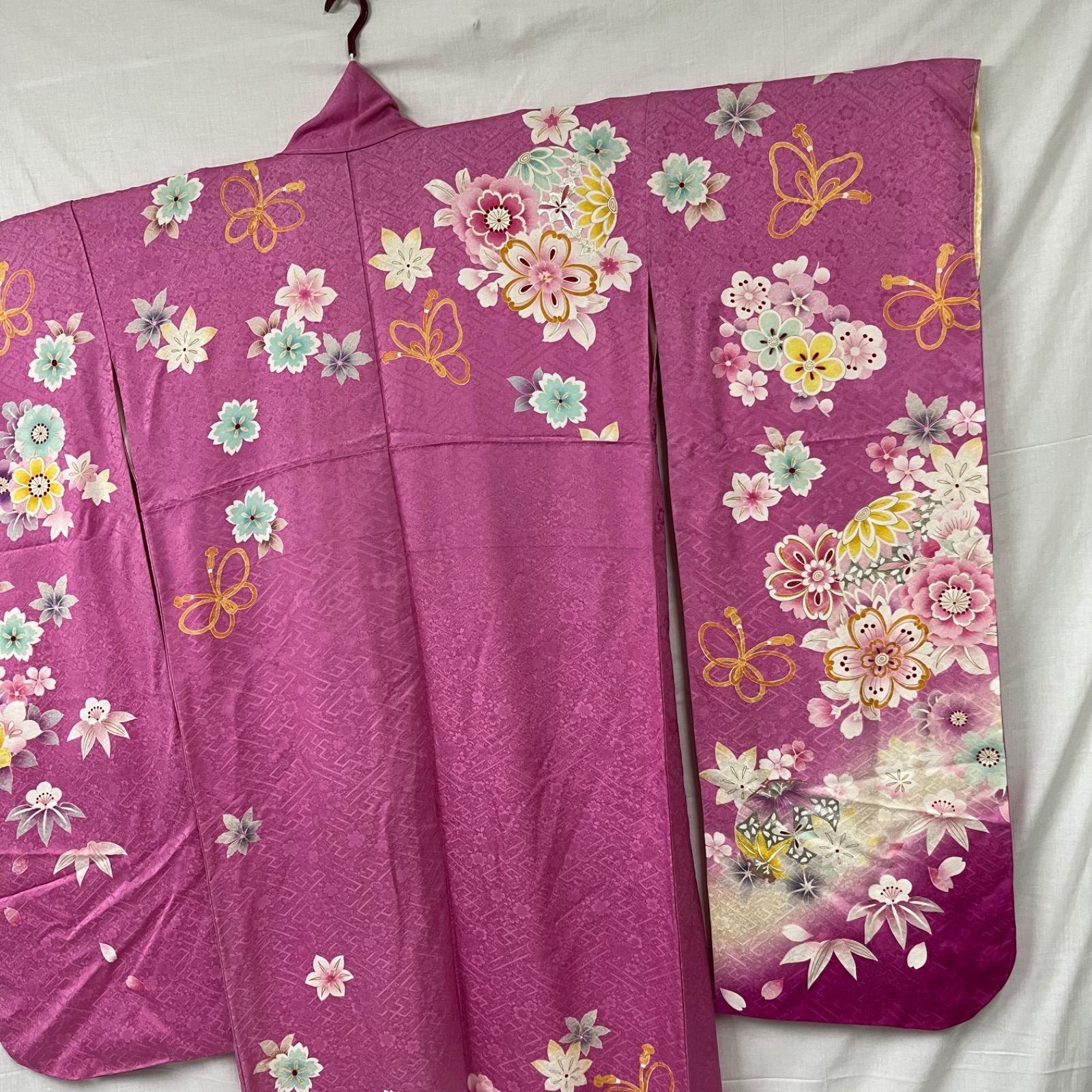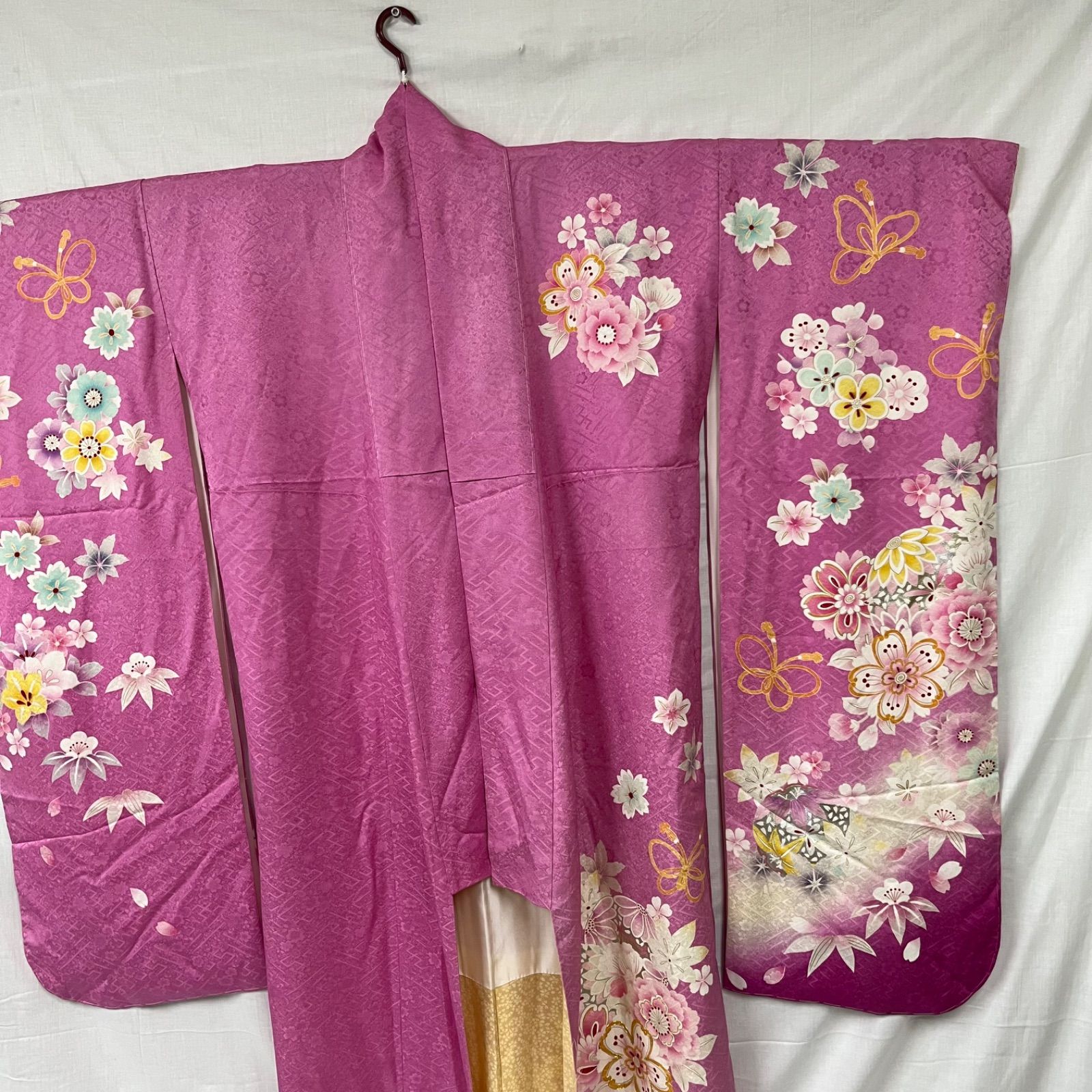 【中古品】【仕立上がり】振袖 成人式 卒業式 晴れ着 ピンク 花柄