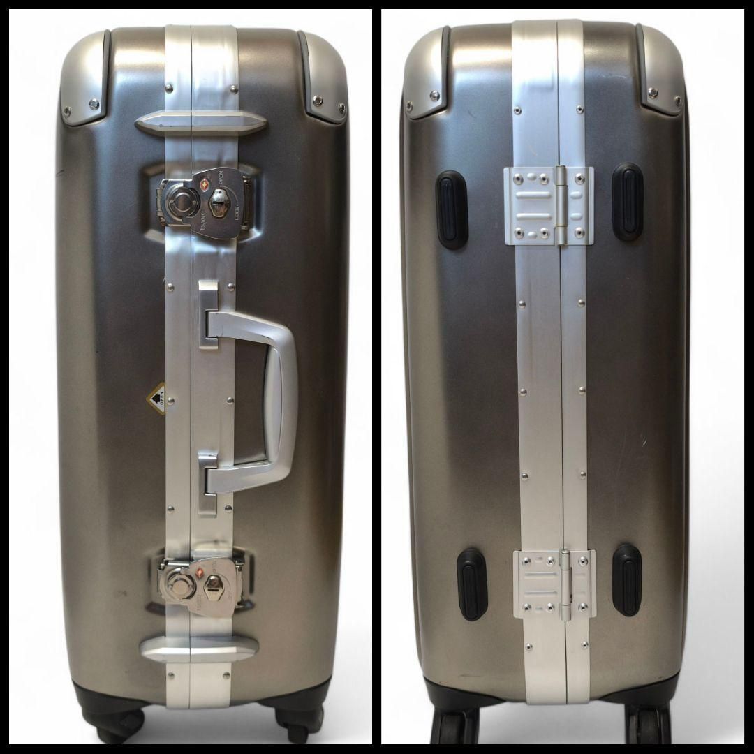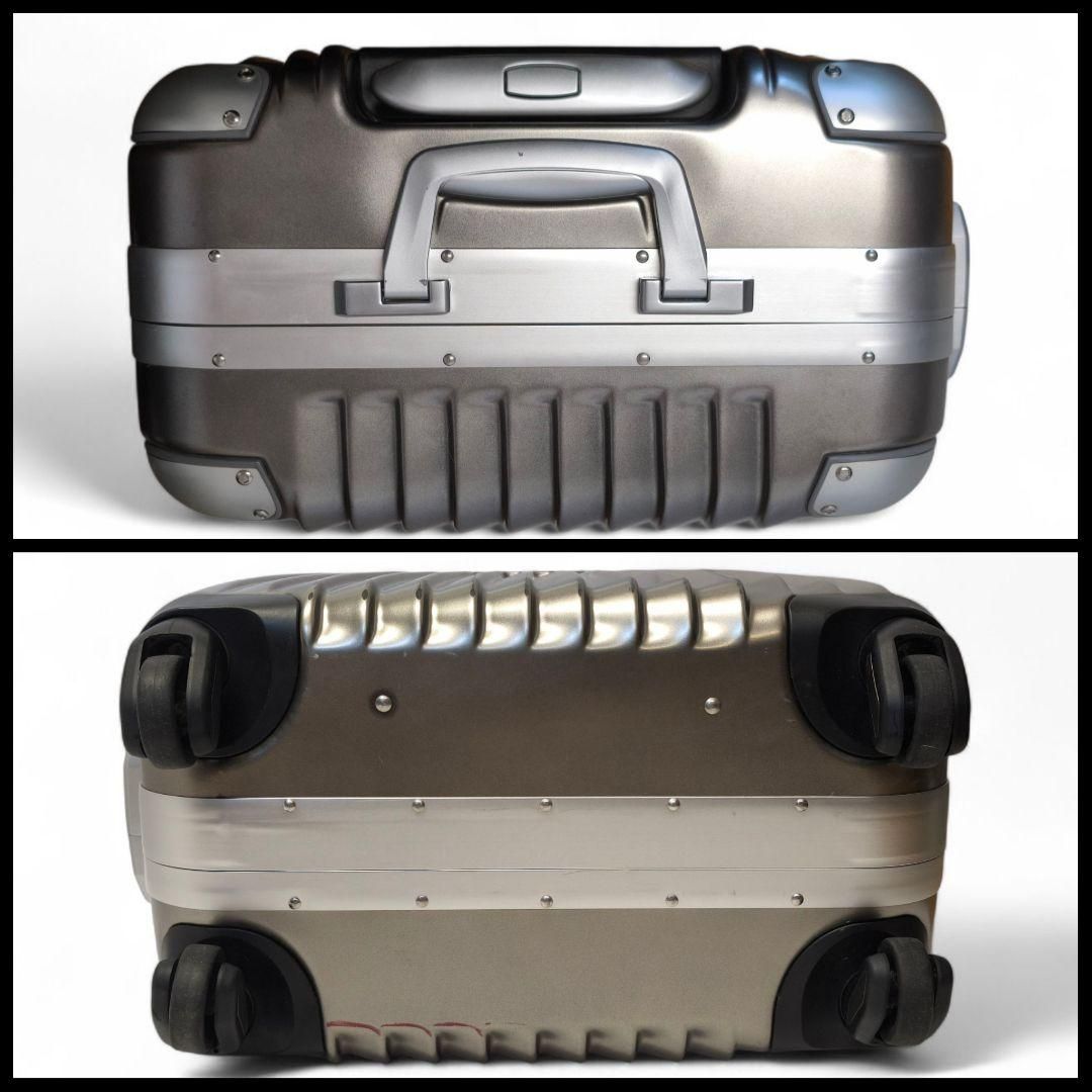 スタイリッシュなデザインのボディシェルが施されたカラーが映える高級感のあるスーツケース。