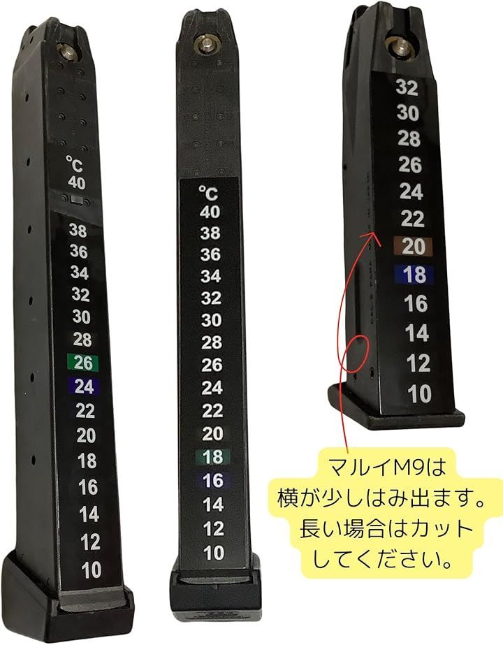 温度低下で動作不良になるマガジン温度や水槽、車内・室内温度など見てすぐ判断できる簡易的な温度計としてご使用ください