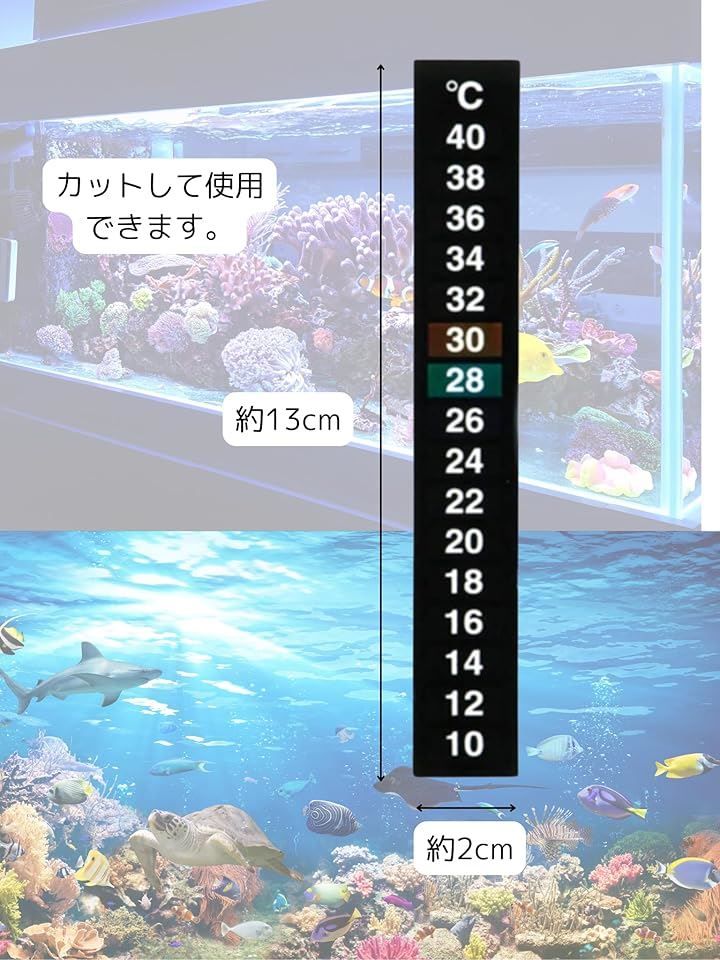 水温に連動して変色し、温度がわかる設計の水温計測シールとなっております。