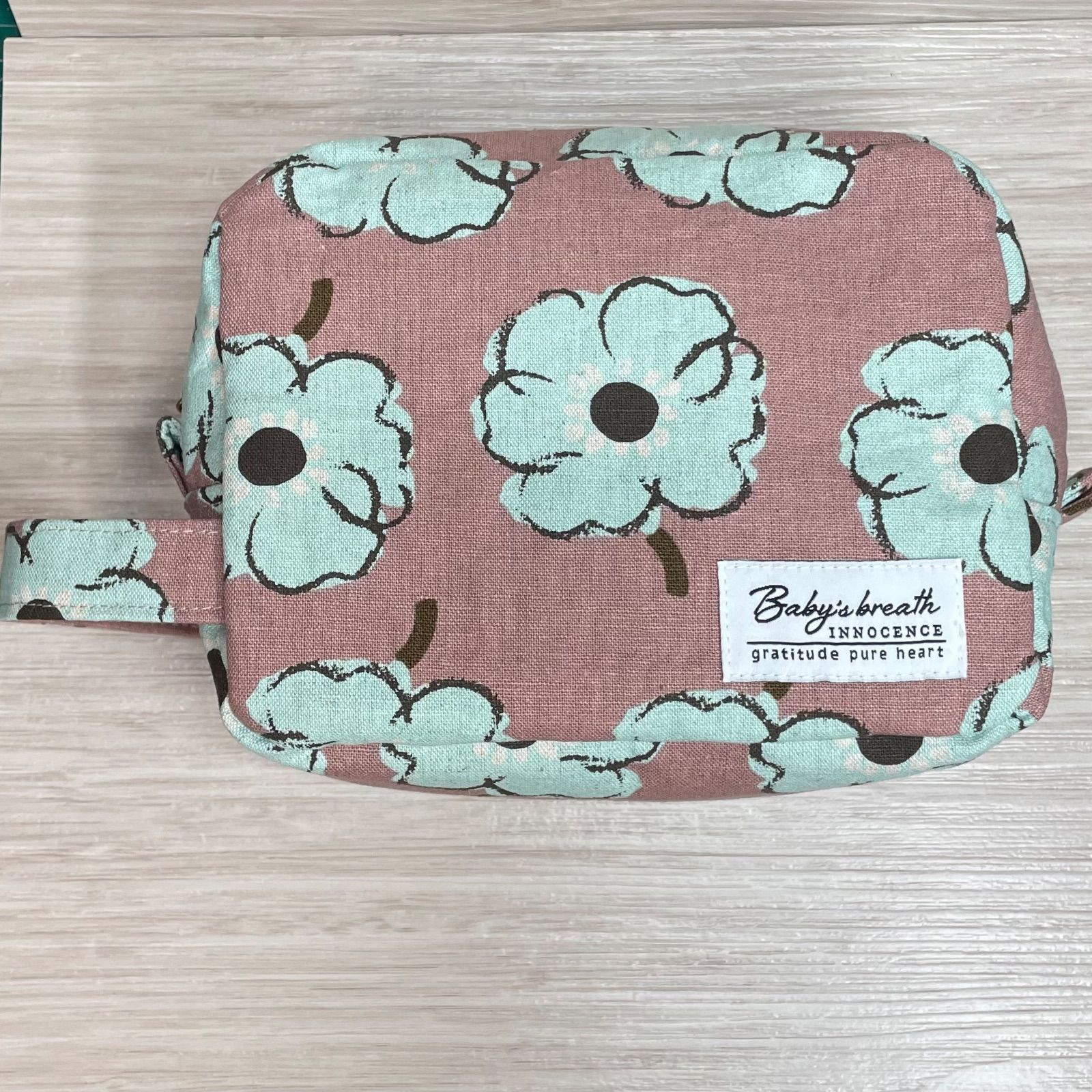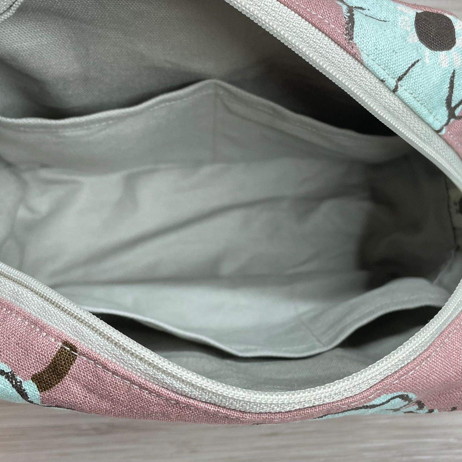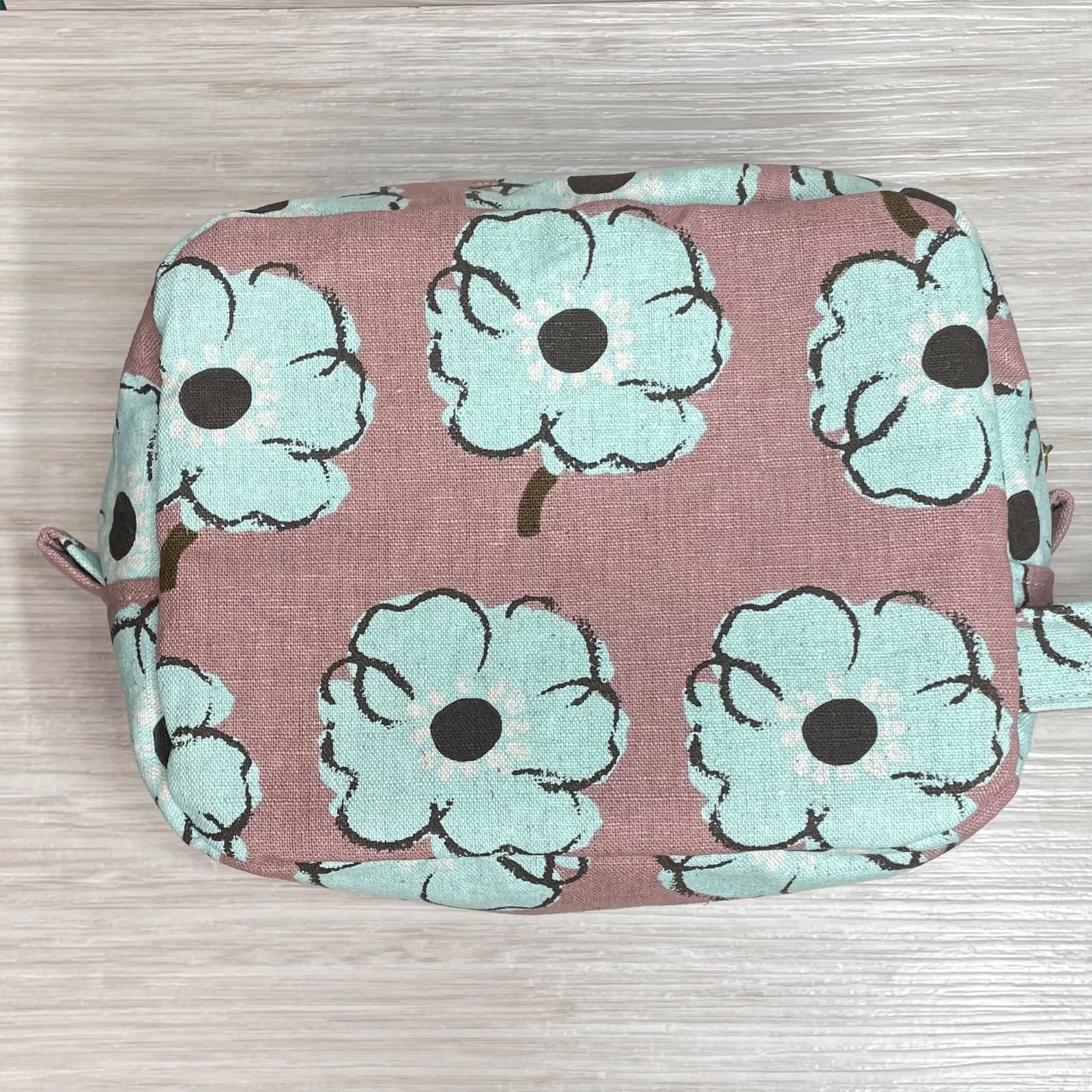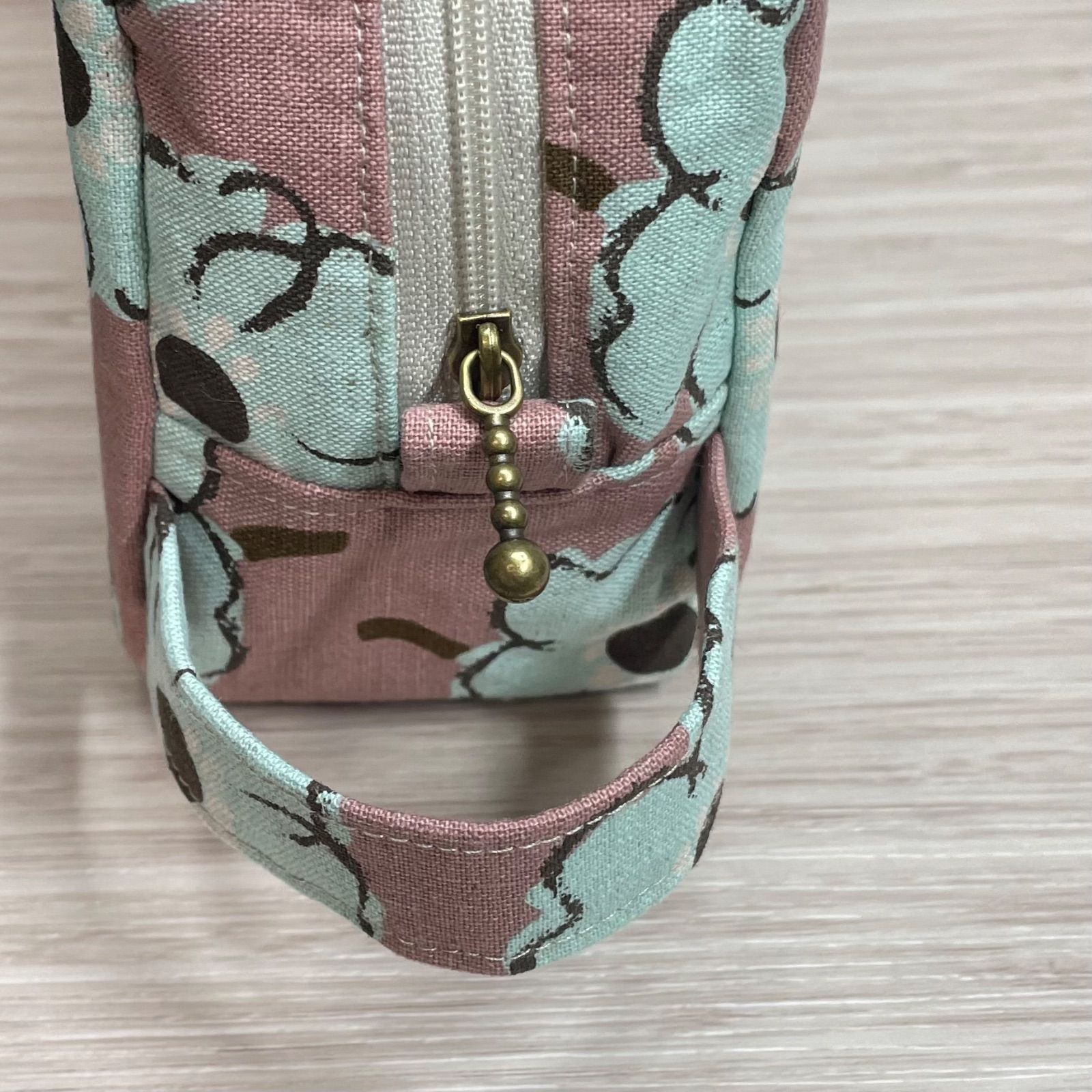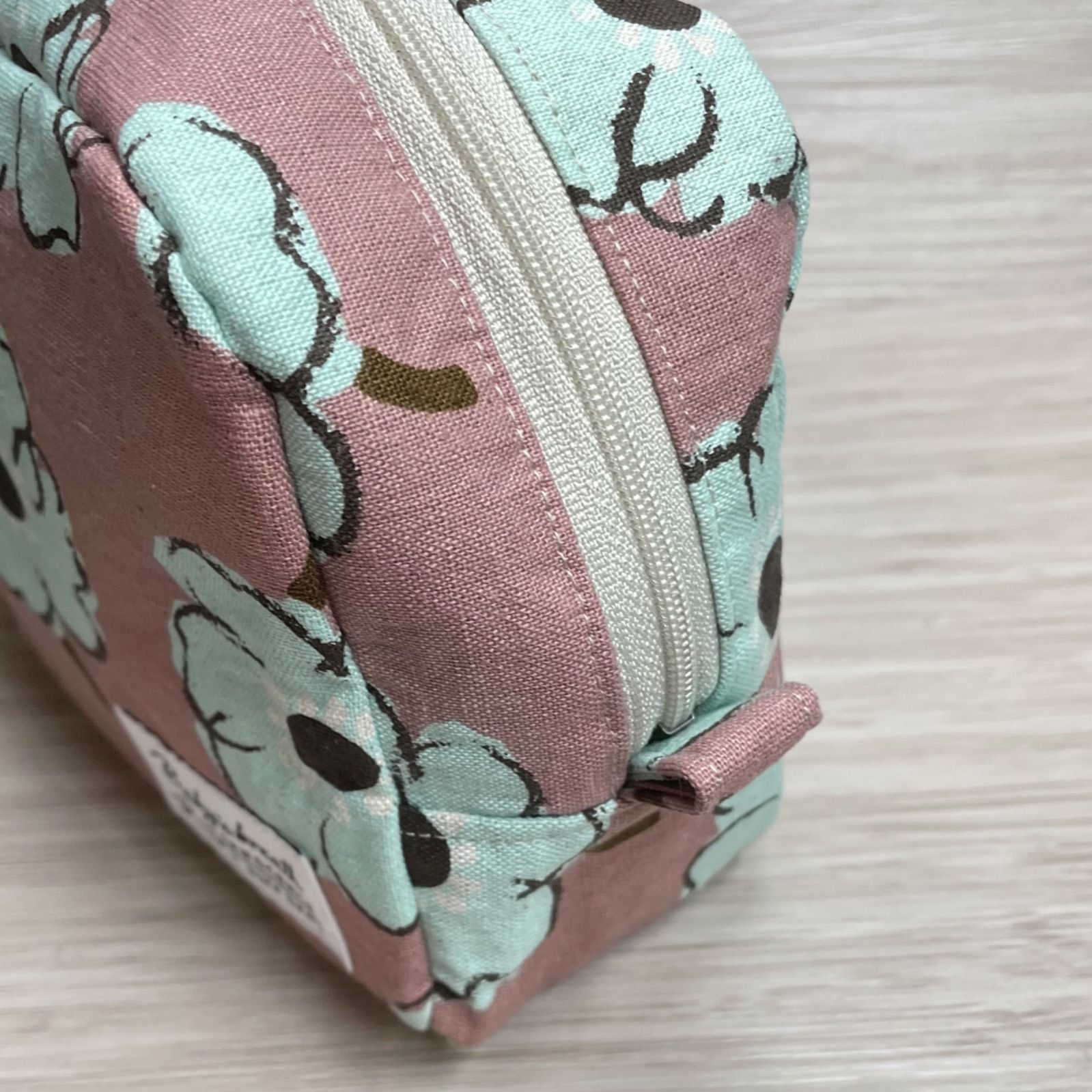 マチが広くファスナーがサイドまでくるので、中身が見やすく出し入れしやすいボックス型のポーチです。