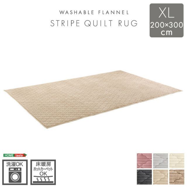 水洗い可能な、大人かわいいフランネルストライプラグ!可愛い見た目のキルトラグで、無地なのにファッショナブル!