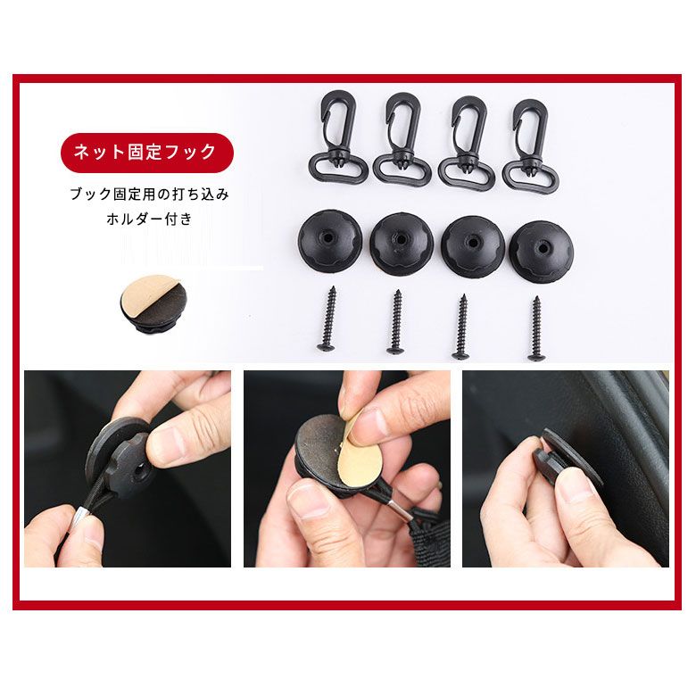 網状のラゲッジネットです。高品質の高強度伸縮ゴム素材を使用。お車の走行時でも荷室に置いたものがゴロゴロころ上がる、滑ることを防止します。