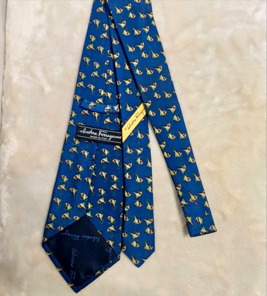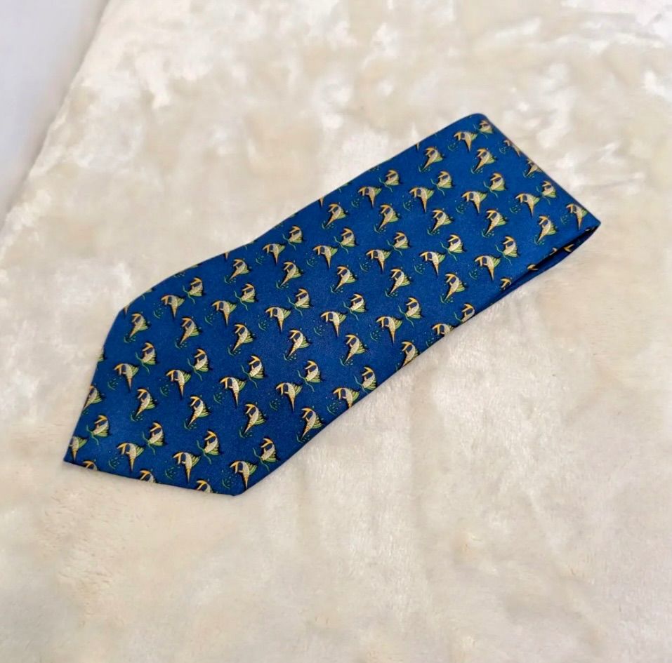 Ferragamo フェラガモ ネクタイ 青系 魚柄