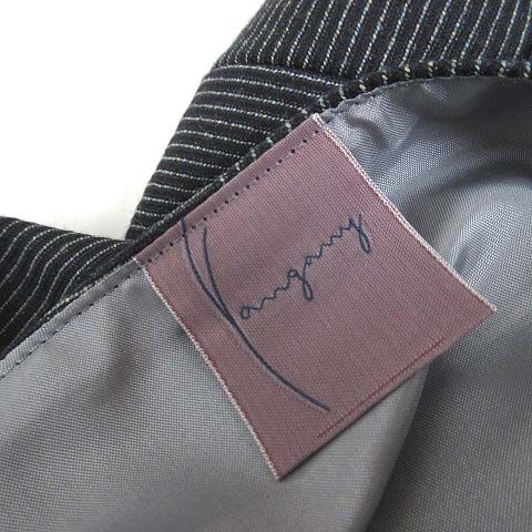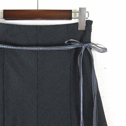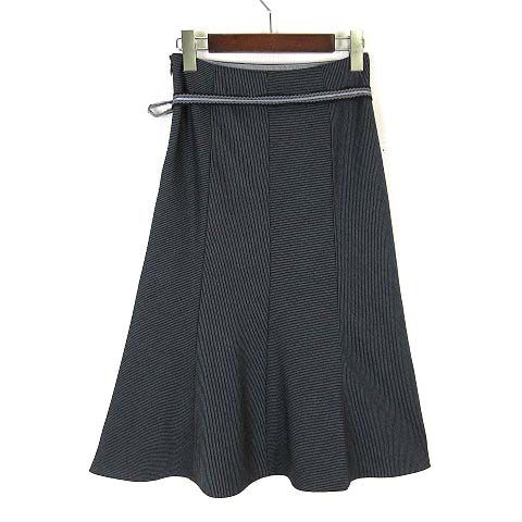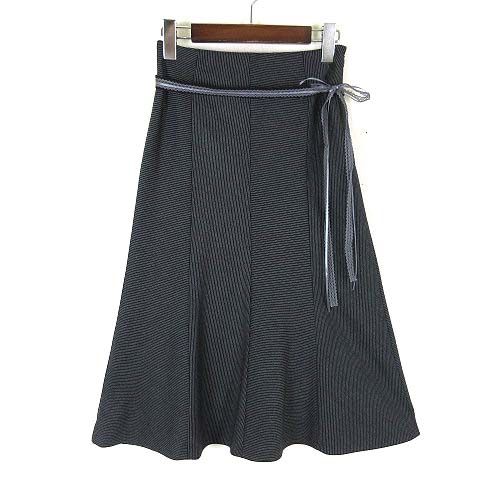 【商品名】ヤンガニー yangany スカート フレア ストライプ ボーダー 切替 ウール ミモレ丈 ウエストリボン レース装飾 S 36 黒 ブラック マルチカラー