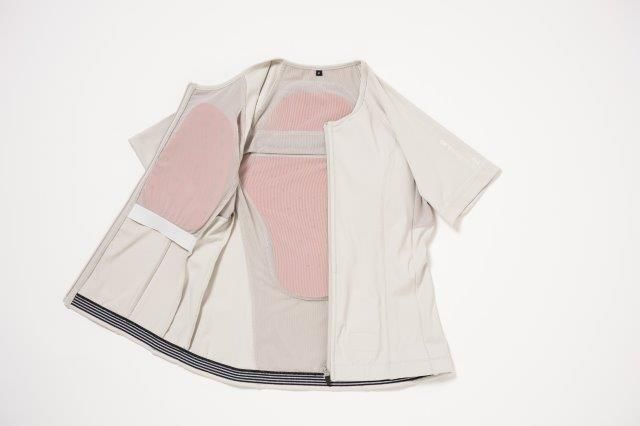 薄型の胸部プロテクターで胸の形を綺麗に見せながら安全性を確保
