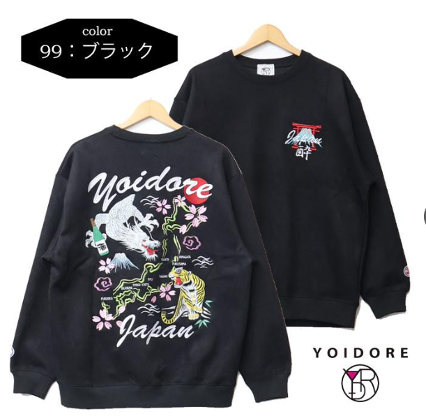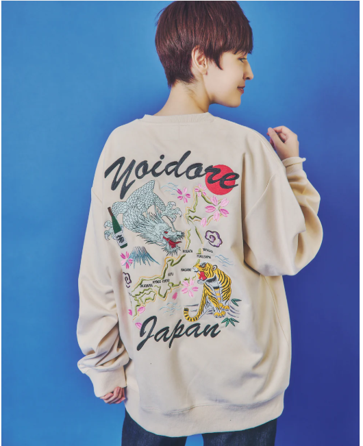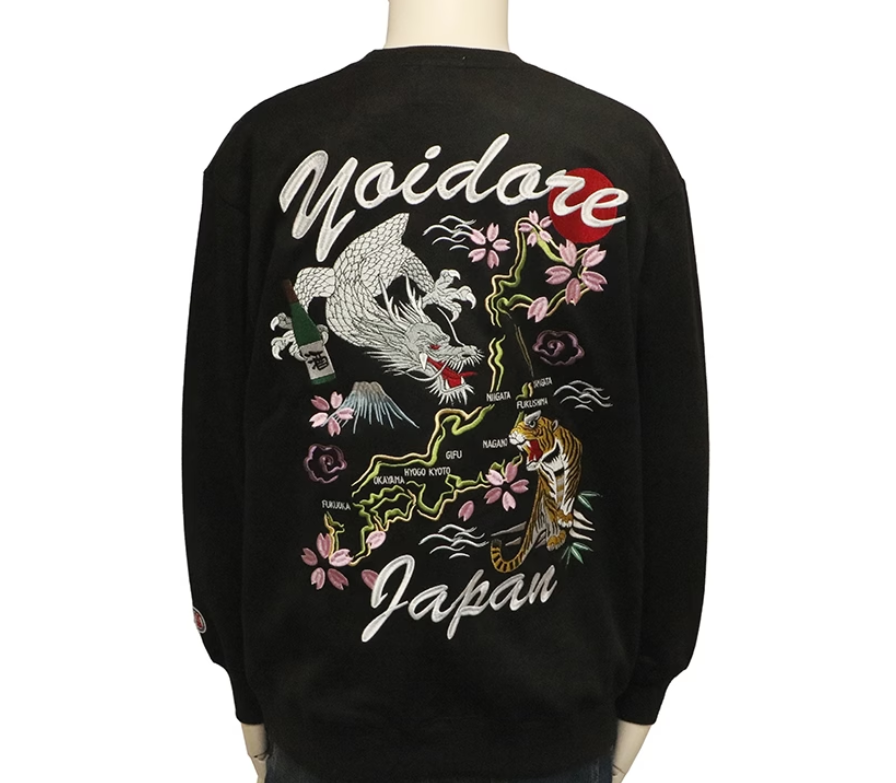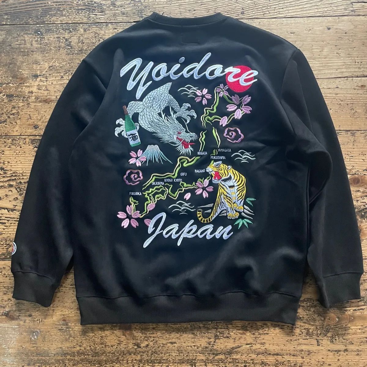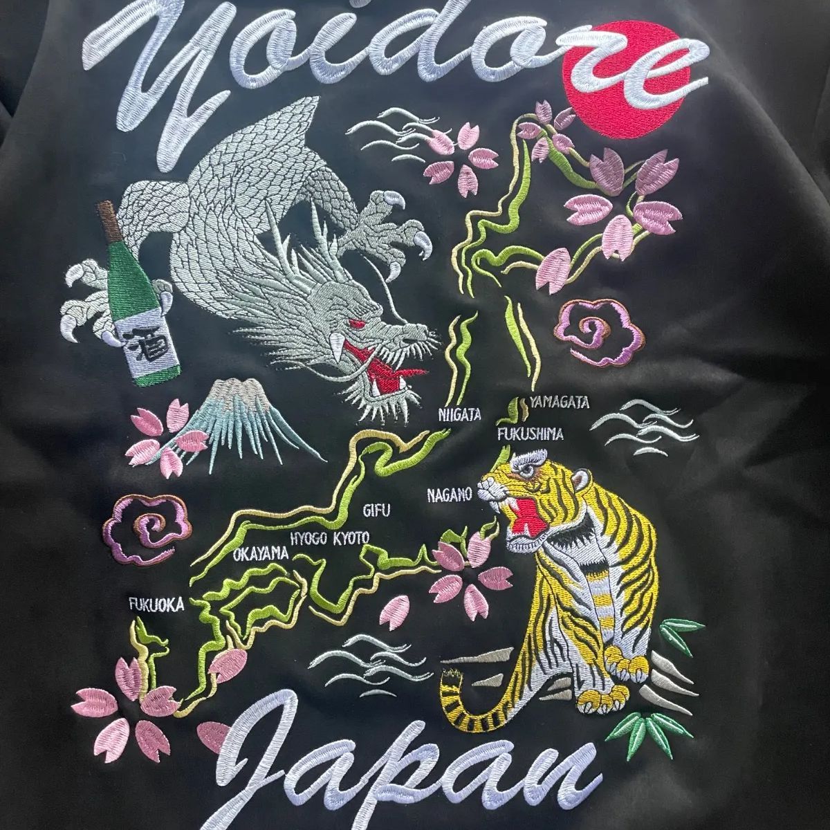 日本地図・龍・虎・桜などYOIDOREの定番デザインを肌触りの良いフェイクスウェードに落とし込んだYOIDOER愛に溢れたアイテム! グラフィックは総刺繍の豪華なデザインに仕上がっています。 ややゆったりめのルーズなシルエットは適度なリラックス感があり、ラフな呑みシーンでのコーディネートに取り入れたいマストなアイテムです。