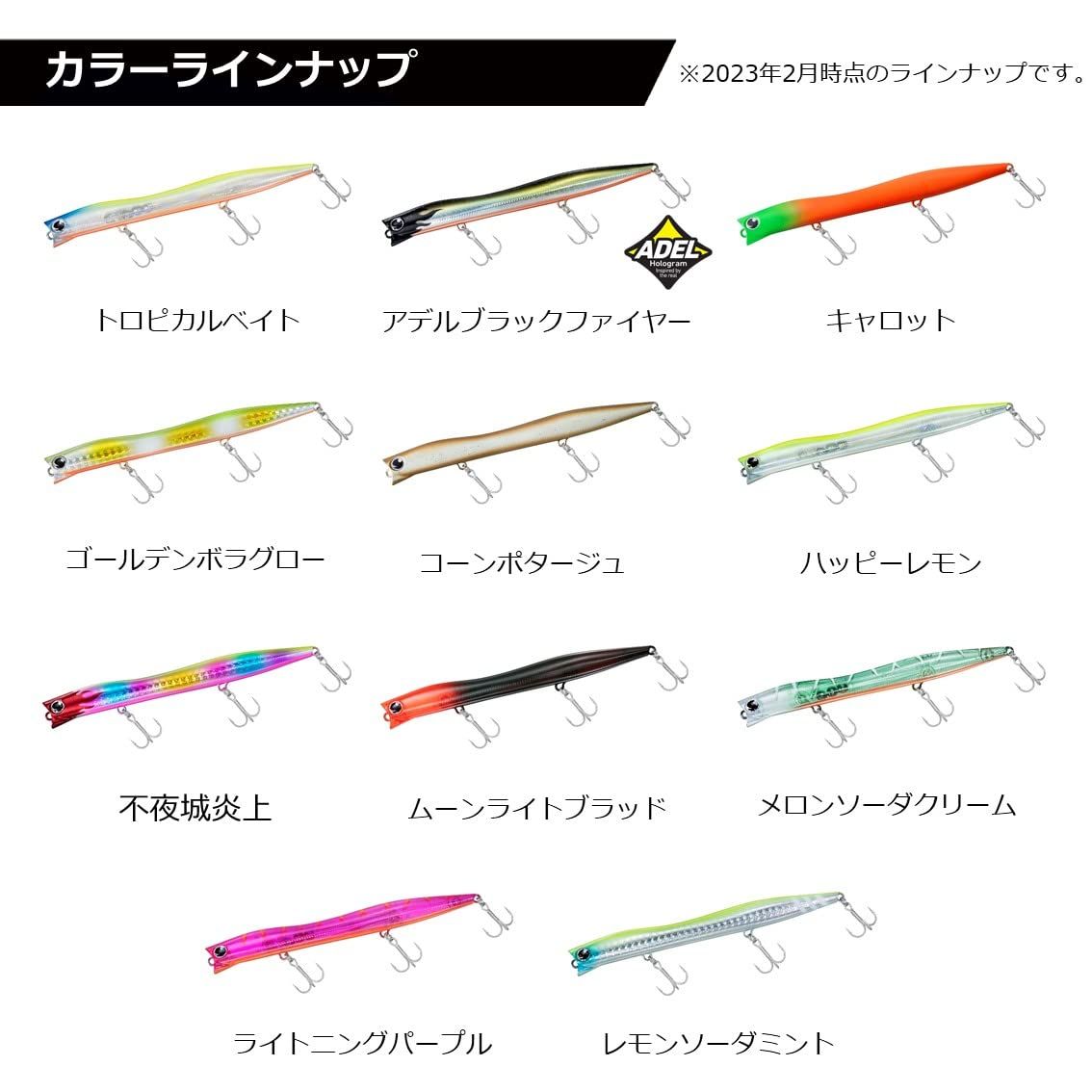 あらゆる条件下で水面直下&水平姿勢をキープ / 磁着重心移動システムを採用していながら素早い立ち上がり / 独自の背中の2つのこぶが生み出す細く深い連続V字波紋が魚を寄せる / 飛距離&アピール力をアップした125㎜サイズはバチだけでなく、通年水面直下を意識したシーバスにアピール。