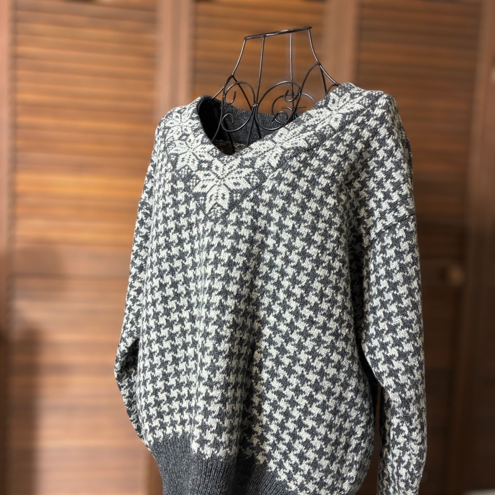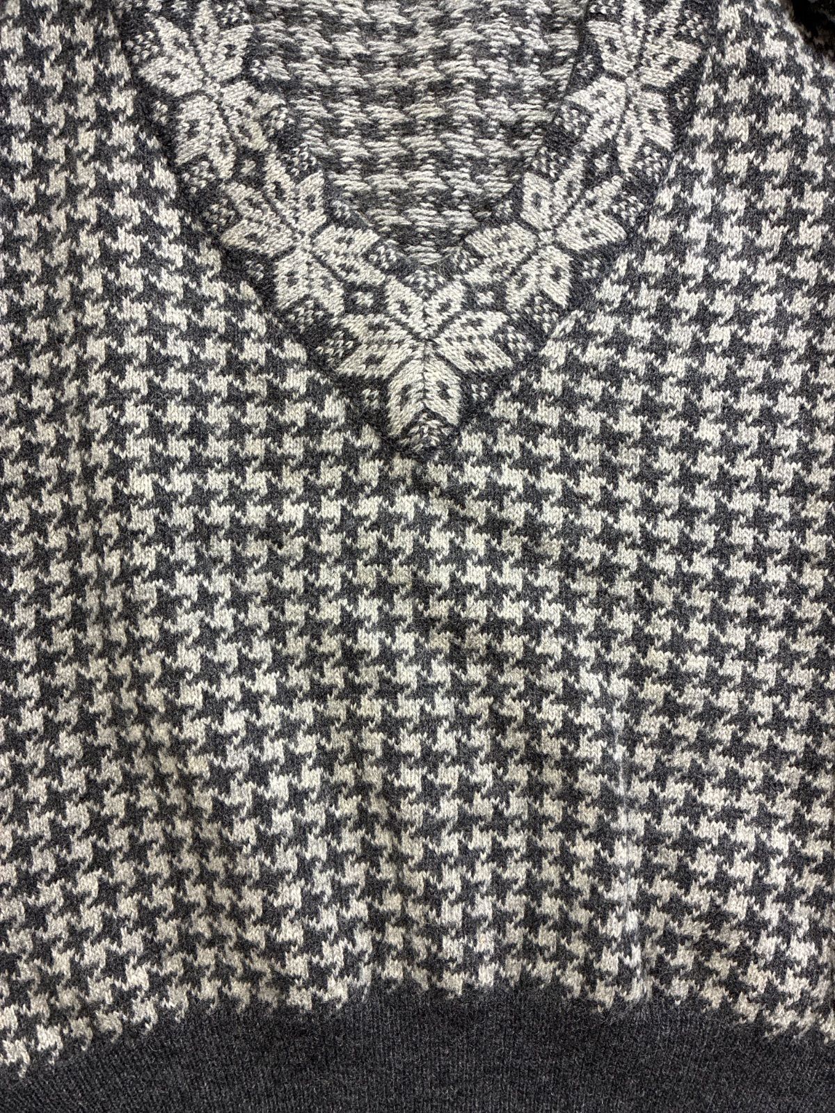 さらにVネック部分には「ノルディック柄(雪柄)」を組み合わせた、デザイン性が非常に高い一着です。