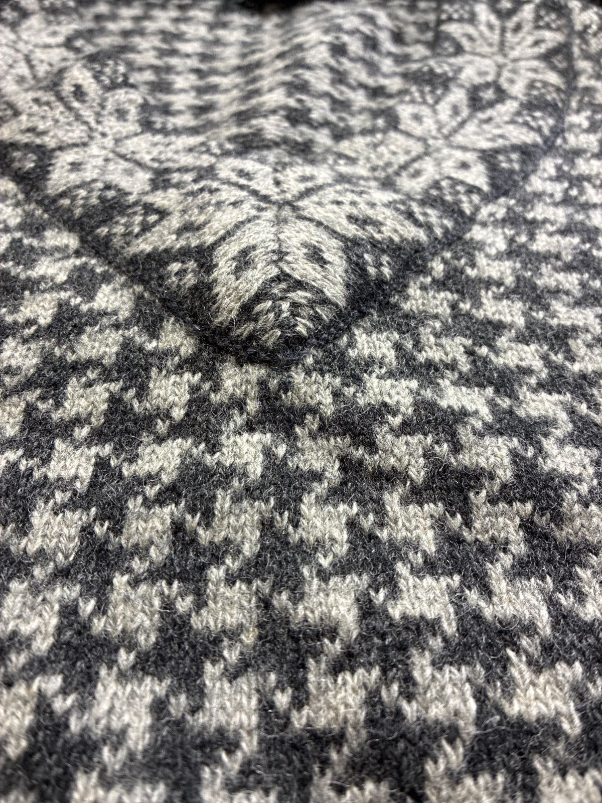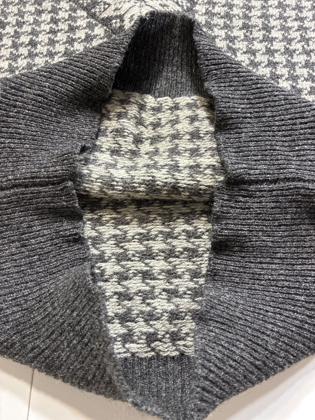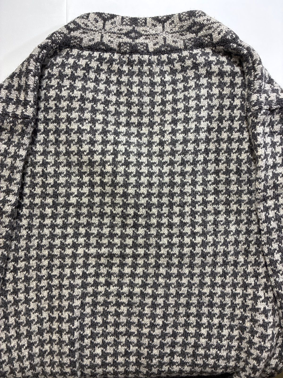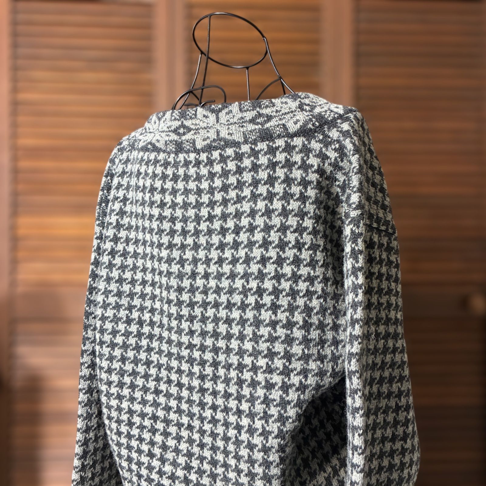 毛100%の肉厚で暖かみのある生地に、クラシックな「千鳥格子(ハウンドトゥース)」をボディ全体に採用。