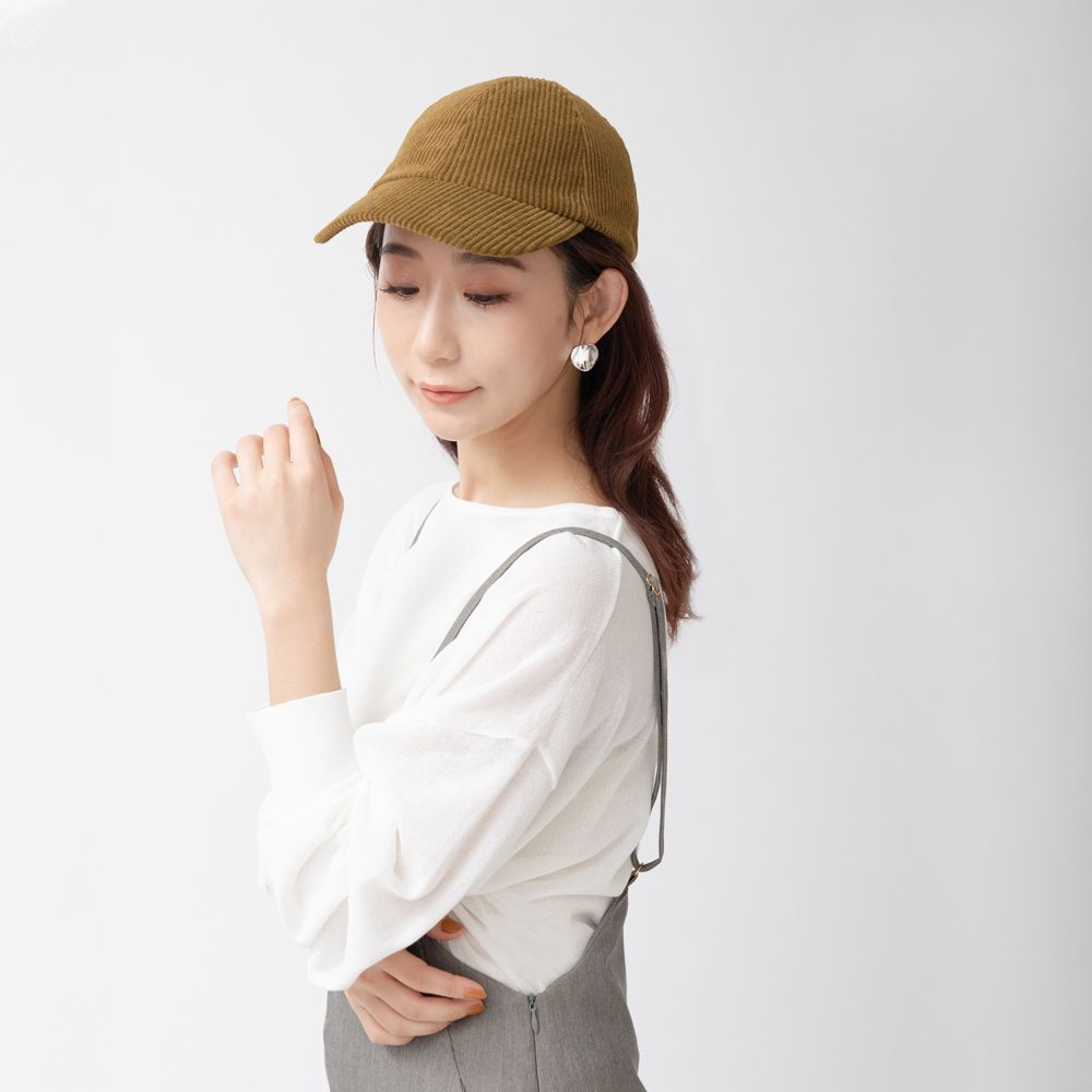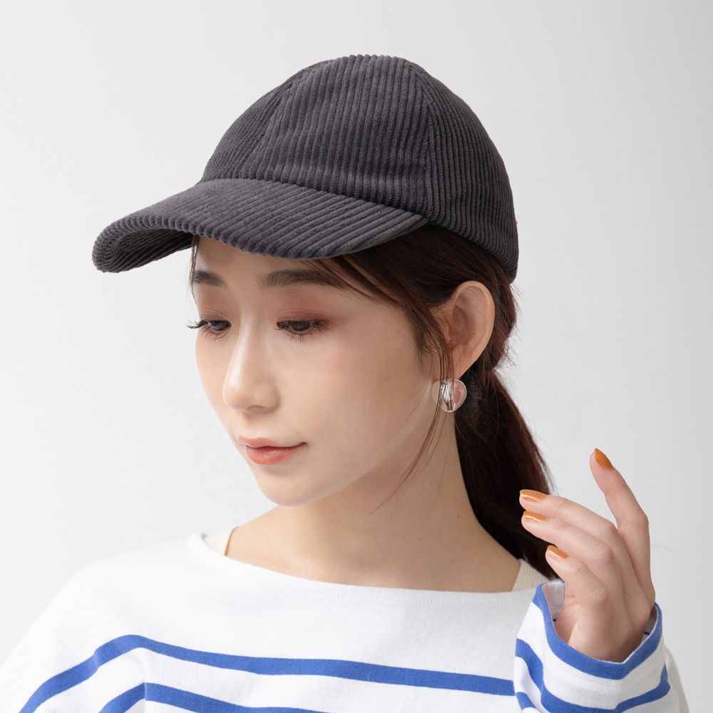通常のコーデュロイより太いピッチの太畝(ふとうね)コーデュロイで仕立てたローキャップ。存在感があり、スタイルに上品な雰囲気をプラスしてくれます。背面はアジャスター金具でサイズ調整が可能なので、ユニセックスでお使い頂けます。ベースボールキャップに比べクラウンが浅めに仕上がっているので、スッキリしたフォルムが落ち着いた印象。秋冬のカジュアル感を演出してくれます。
