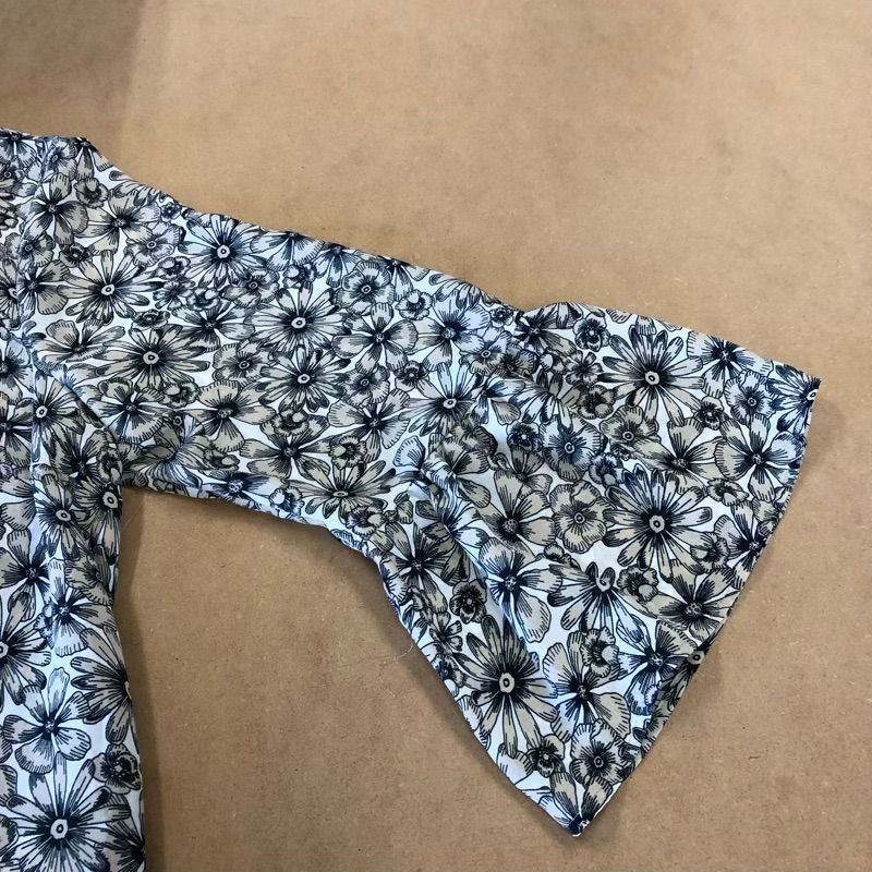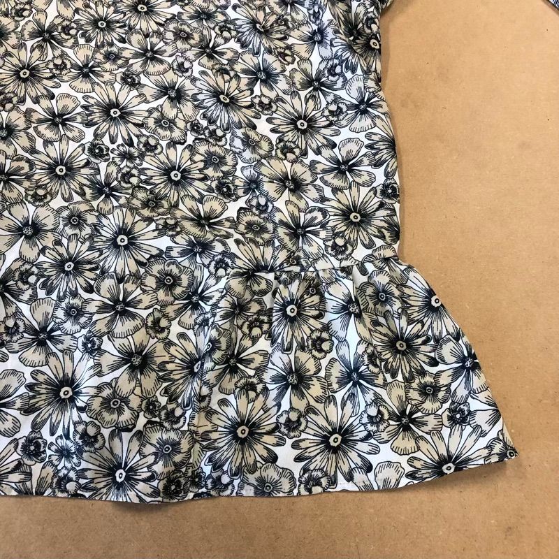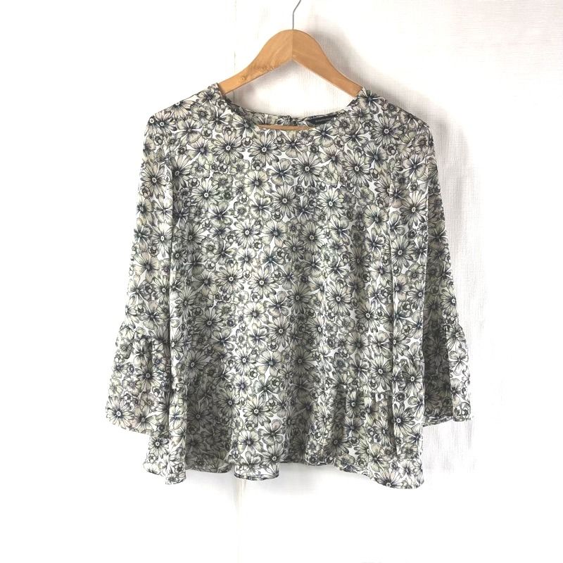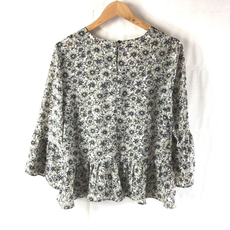 バナナリパブリック Banana Republic カットソー 花柄 フリル袖 黒 ベージュ系 LGサイズ 2025091600128